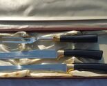 Vintage set of 2 knives AND 1 serving fork made by John Hull Cutlers Corp. Hull of Meriden. Knives "guaranteed" forever sharp. Blades are Sheffield stainless steel made in England.