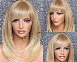 Human hair Blend Wig Face Framing Razor Cut Blonde mix Heat OK Full Bangs Center