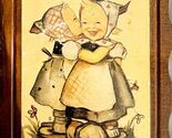 This vintage Hummel wood matte print art depicts a heartwarming scene of 2 young farm girls smiling, making it a perfect addition to your farmhouse-style wall decor. The rectangular plaque features a multicolor design on wood, with a matte finish and scalloped edges that adds to its rustic charm.