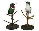 HUMMINGBIRD PAIR on TREE – Hand Carved Ruby Throated Bird PA Dutch Folk Art USA