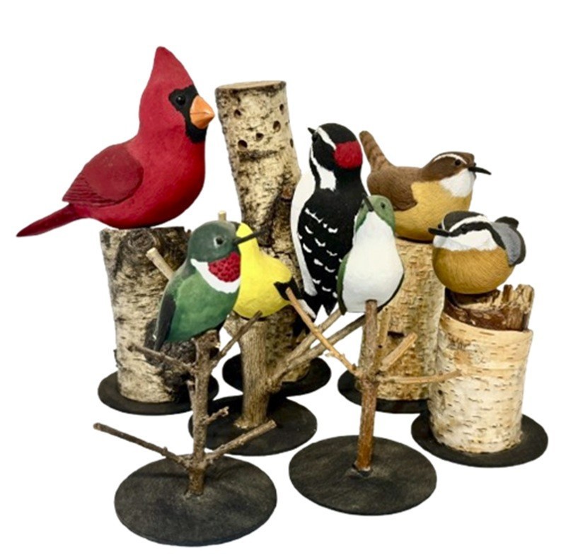 Celebrate the beauty and grace of one of North America?s most beloved birds with hand-carved Ruby-Throated Hummingbirds, masterfully crafted by Pennsylvania folk artist David Hafner. Each hummingbird is individually carved from solid wood, hand-painted with lifelike detail, and perched delicately on a natural branch-style base.