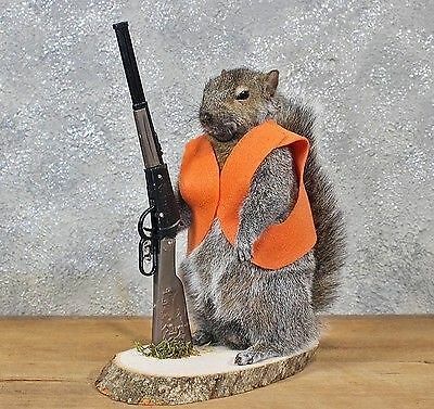 - Hunter Squirrel Taxidermy Animal Statue on Base Home or Office Gift