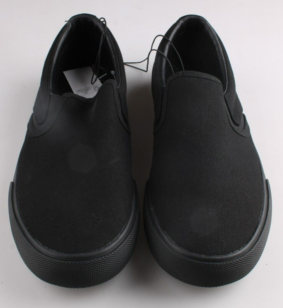 La chaussure de pont a glissiere Arlo Hurley Men's est une sneaker en toile decontractee en couleur noire unie avec une forme d'orteil rond.
