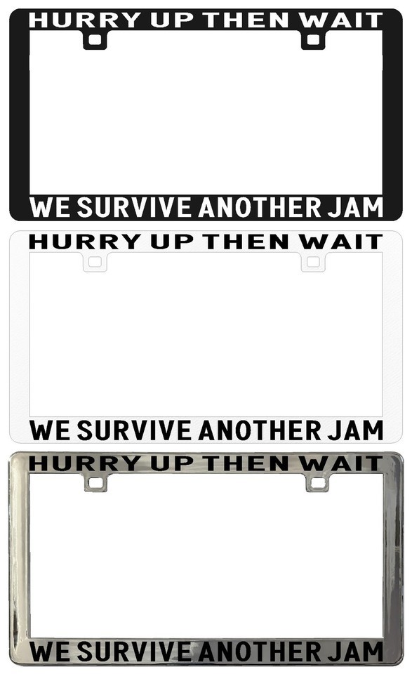 - HURRY UP THEN WAIT WE SURVIVE ANOTHER JAM Assorted Legal License Plate Frame