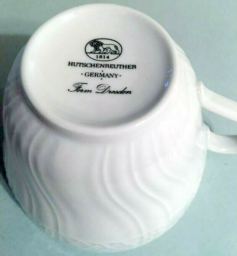 - Hutschenreuther Dresden White Tall Tea Coffee Cup Embossed 3-3/8"H Germany New