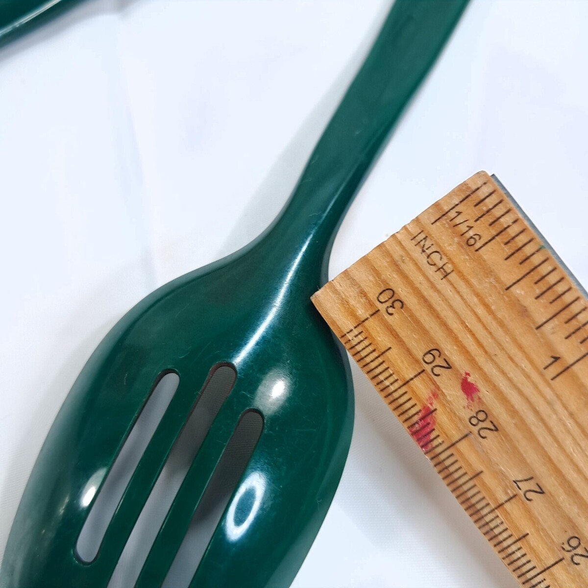 - Hutzler Melamine Mini Slotted Spoons #516 Green set 2 1995 serving Vintage