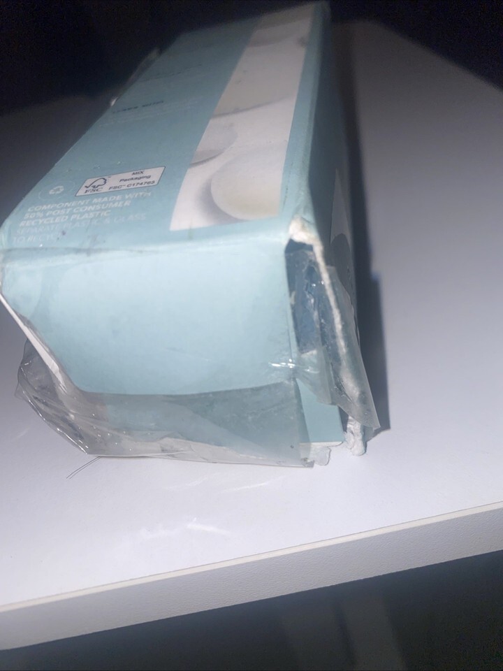 It was an Amazon return so please see photos of box. The item is new. However, the lid is slightly cracked, and the box is damaged.