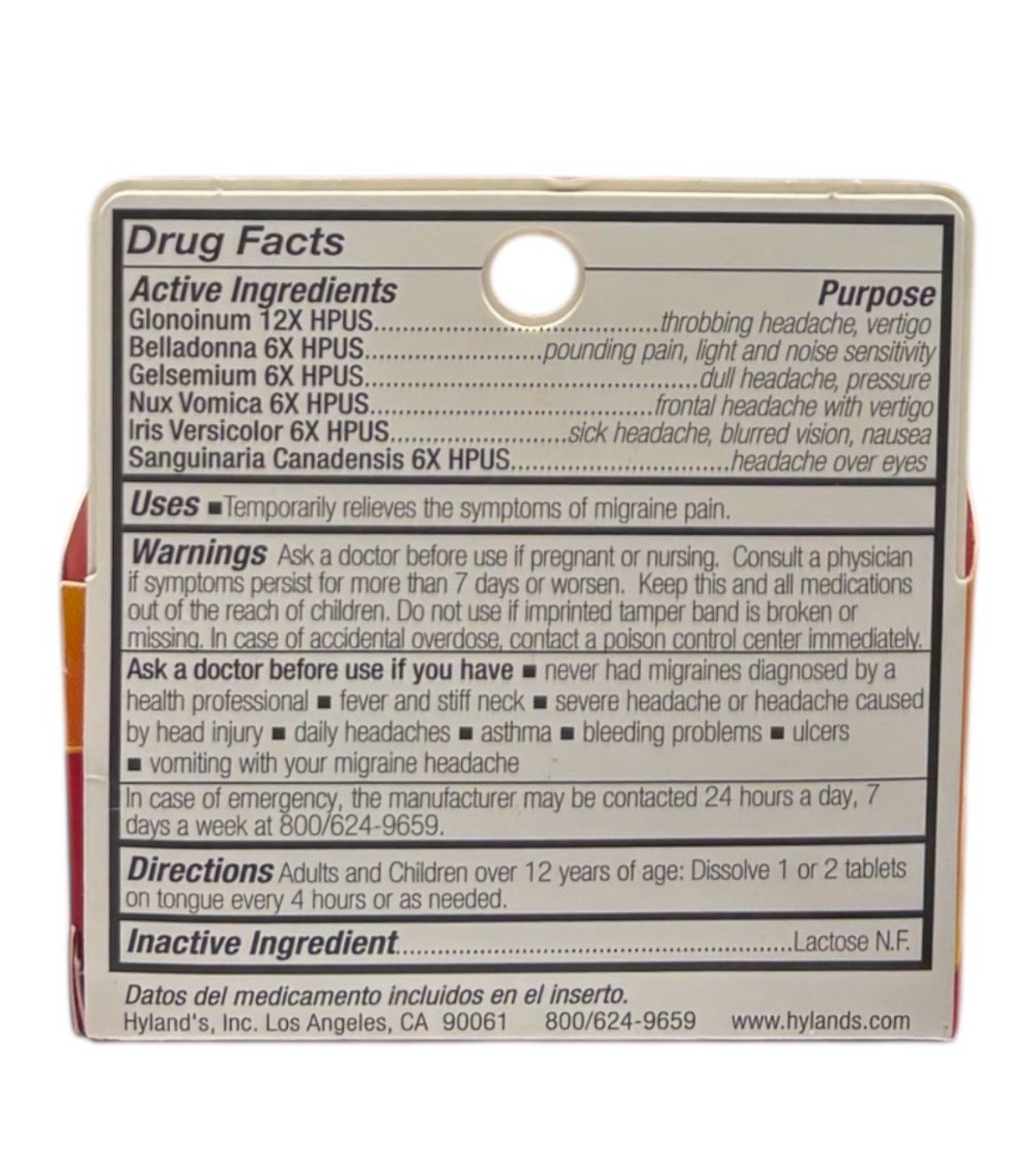 - Hyland’s MIGRAINE Relief 60 Quick-Dissolving Tablets Natural Original USA Made