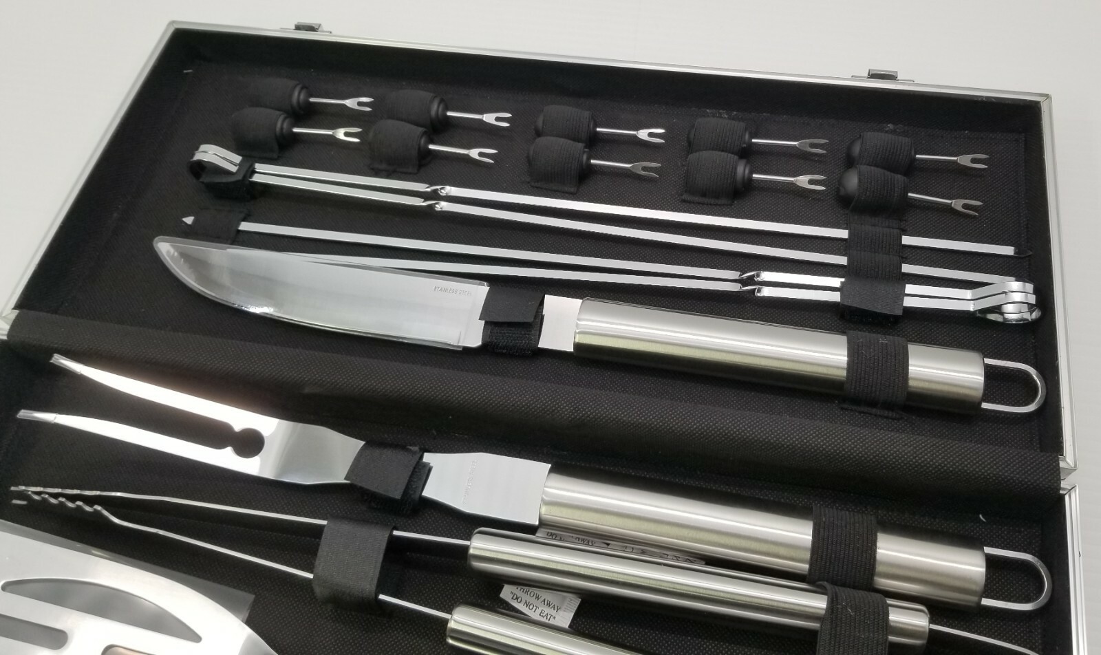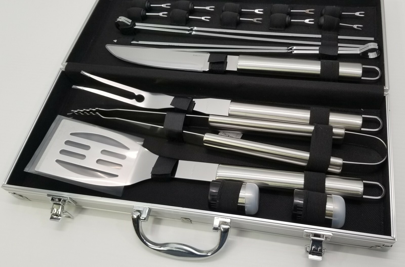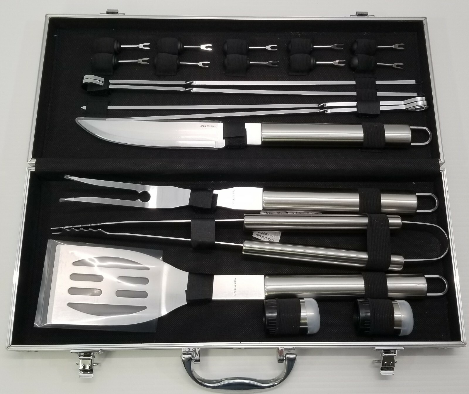 - I) 21 Piece Stainless Steel BBQ Grill Accessory Tool Set in Aluminum Carry Case