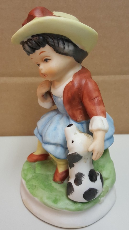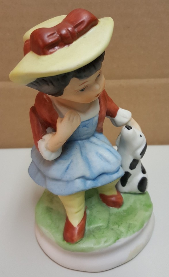 I) Davar Girl with Dog Figurine Country Home Porcelain Statue