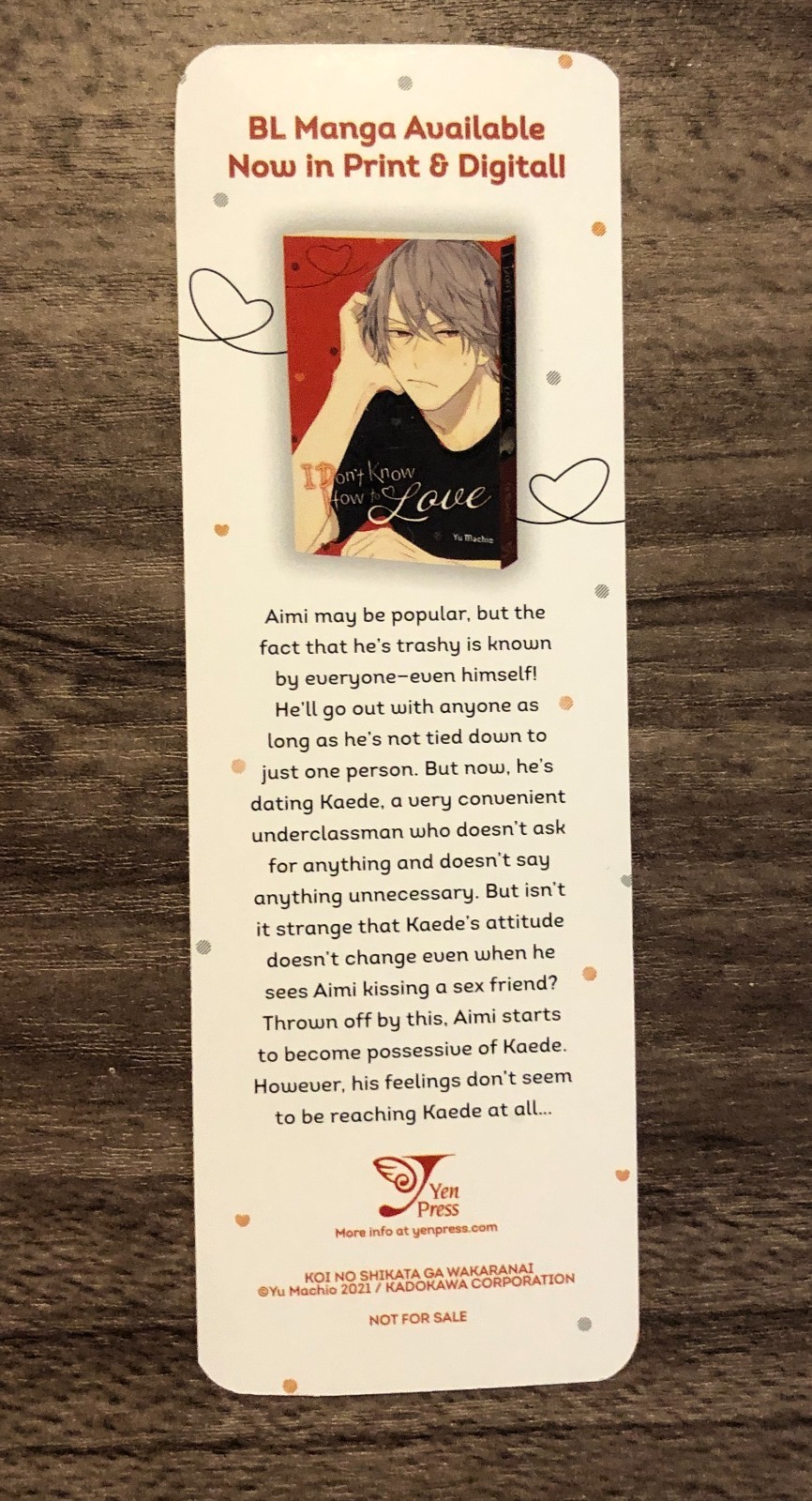 - I DON'T KNOW HOW TO LOVE BOOKMARK NYCC Comic Con 2025 MANGA Yea Press