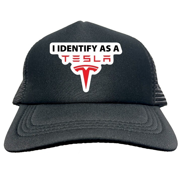 - I IDENTIFY AS A TESLA FUNNY Trucker Hat Cap Foam Baseball HF0214