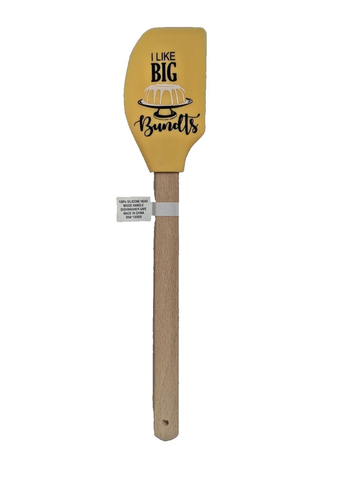 I Like Big Bundts Spatula Yellow Silicone Natural Wood Handle Measurements NEW