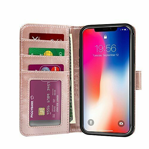 iPhone X wallet case folio made from premium PU leather cover and soft shockproof TPU case made to store your cash or cards and while giving you a protective fashionable cover.