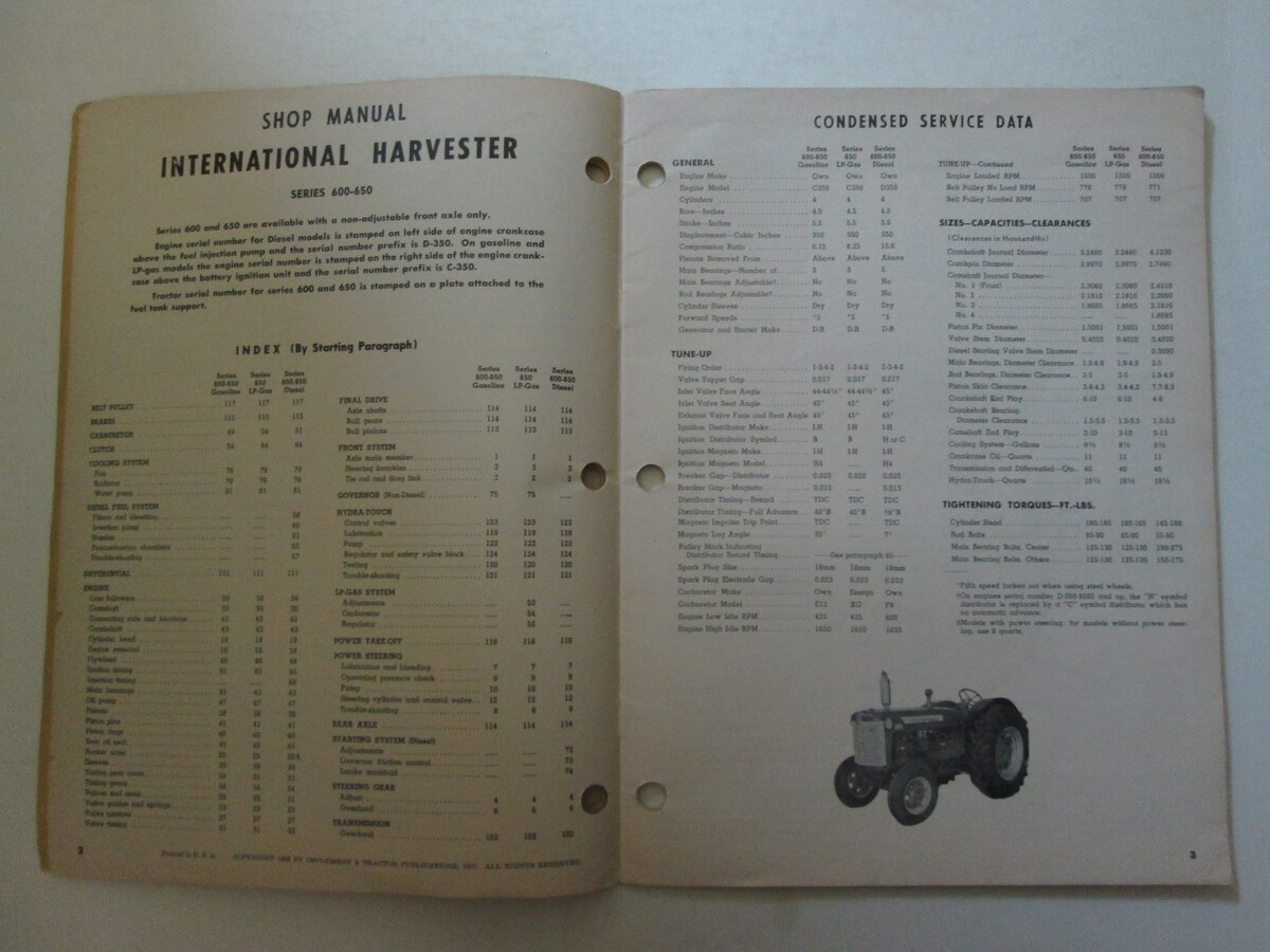 Implement Tractor International Harvester Series 600 650 Shop Manual