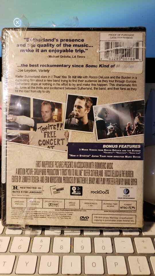 It's too bad Jack Bauer was busy solving an international terrorist crisis. As seen with unflinching eyes in this wickedly entertaining documentary, Kiefer Sutherland could have used the organizational powers of his 24-star alter-ego to help him with his duties as road manager of a burgeoning rock band. Sutherland is exposed as steadfast devotee of Rocco DeLuca The Burden as he tries his best to manage the details of the band's brief winter, 2005 tour of Europe. In addition to his career as a famous actor, Sutherland is also co-founder of the indie record label Ironworks Music, and as I Trust You to Kill Me proves, he's clearly the #1 fan of Ironworks' up-and-comers Rocco DeLuca The Burden. The band's tour of small clubs took them to London, Dublin, Reykjavík, Berlin, and points in between. Director Manu Boyer lets his camera linger over the best and worst of it all. Some of the worst is of Sutherland as he ineptly (but utterly sincerely) tries to pump the band up at every opportunity, whether it's doing radio promos, hauling heavy amps into a London nightclub in the freezing cold, or slyly handing out tickets in Dublin pubs and street corners for an undersold show. It's hilarious to see him simultaneously exploiting and enjoying his celebrity status with passersby--some of whom know who he is, others only vaguely realizing that they ought to know who he is. Director Boyer also does some nosy prodding into Sutherland's private life, especially after he's hefted a few pints (the clip of Sutherland taking a drunken running dive into the Christmas tree in a posh London hotel was brief a YouTube smash after the film first aired on VH-1). We see the crawling-up end of the rock 'n' roll lifestyle from Sutherland's point of view and from the band's. Though it's certainly not the best rock concert movie, there is some terrific footage of The Burden performing their bloozy brand of rock behind DeLuca's raw wail. In spite of Sutherland's "help," the band may have a good chance at gaining a following. I Trust You to Kill Me (the title of The Burden's first album) documents both a personal journey for Kiefer Sutherland and a glimpse at the hardscrabble of a band clawing their way up. On both counts it's great fun and a terrific piece of rock 'n' roll entertainment. --Ted Fry
