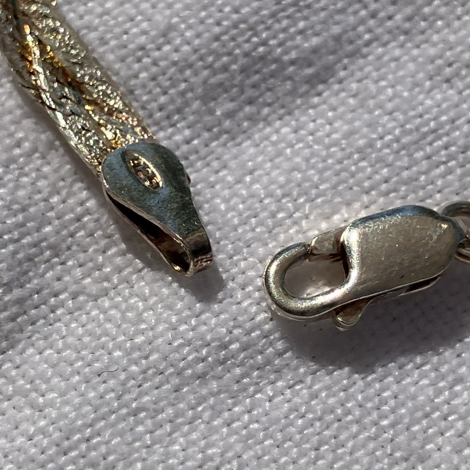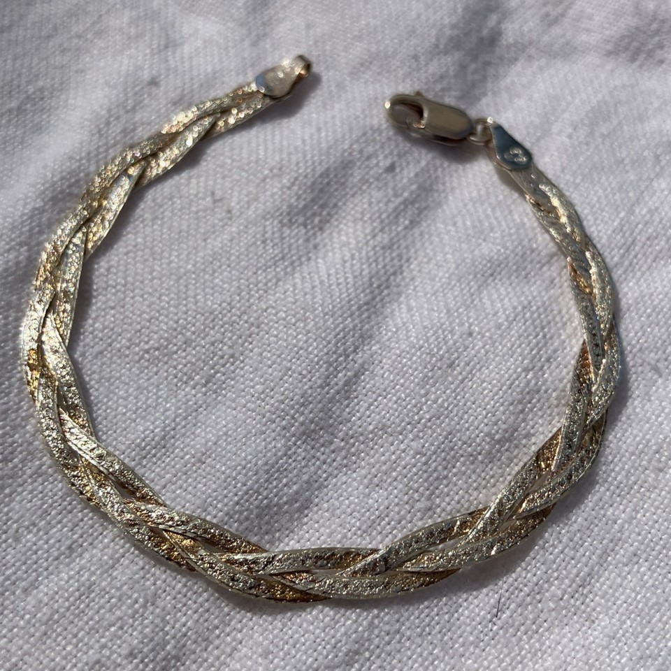 The IBB 925 Sterling Silver Multi Color Braided Italian 7 Inch Bracelet is a stylish and unique piece of jewelry. Made in Italy, this bracelet features a chain style design with a braided pattern, incorporating both silver and gold colors. The 7-inch length adds a touch of sophistication to any outfit, making it a versatile accessory for any jewelry lover. Found at a recent estate sale.