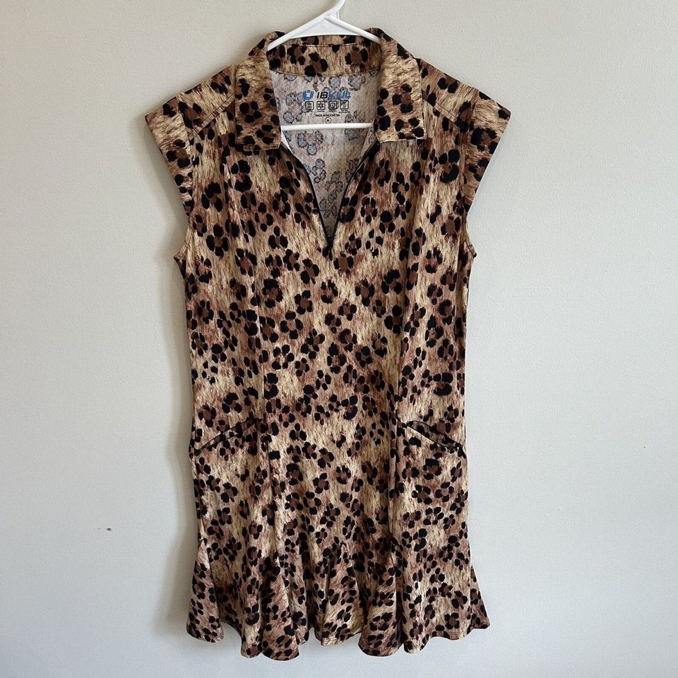 - IBKUL Leopard Print Sleeveless Active Dress UPF 50+ Golf Tennis Pickleball M EUC