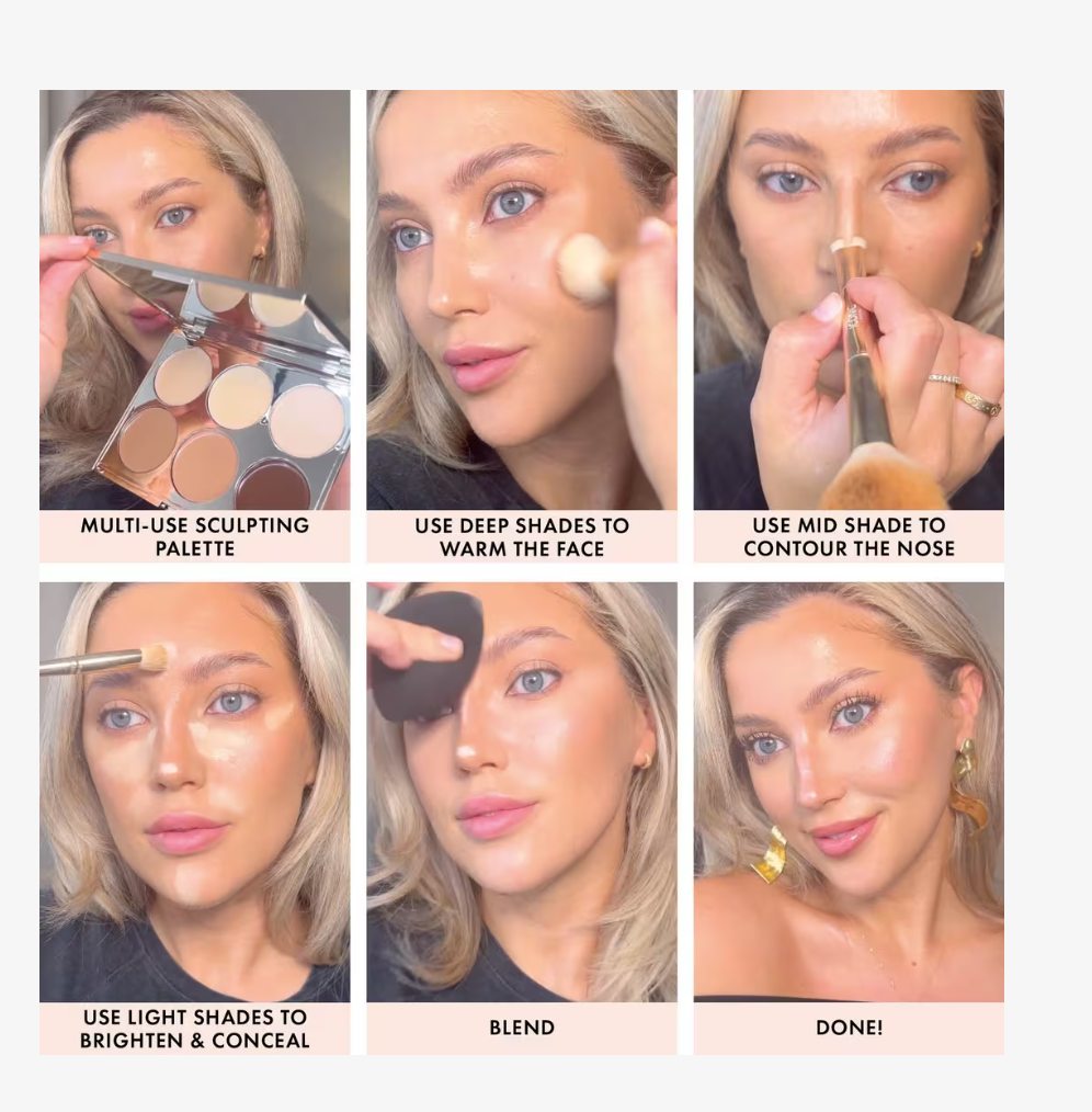 Featuring three shades to conceal, highlight and brighten and three shades to contour, define and bronze, this palette contains everything you need and MORE to create a flattering, sculpted look, tailored to you.