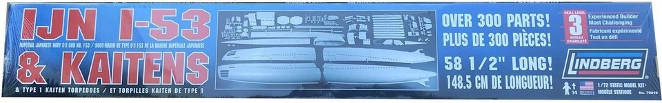 - IJN I-53 Submarine with Kaiten Torpedoes Plastic Model Kit Lindberg 1:72 Scale