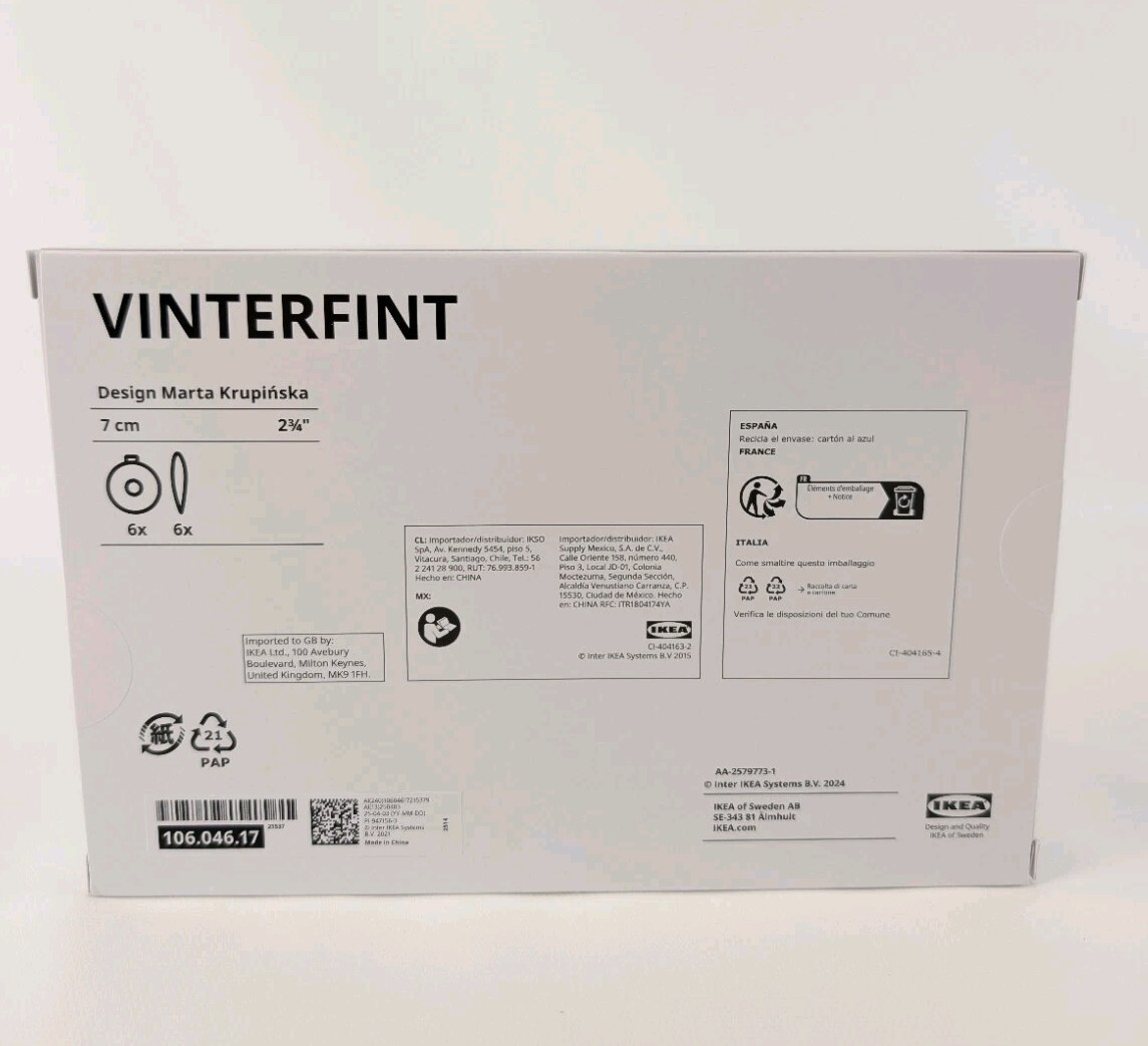 IKEA VINTERFINT 6x Christmas Tree Ornaments Mixed Colours Decorative Baubles Set. Condition is New. Shipped with USPS Ground Advantage.
