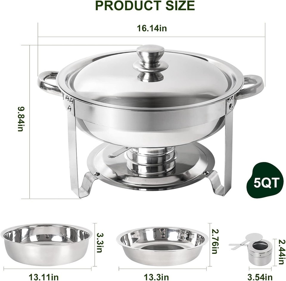 - IMACONE Chafing Dish Buffet Set of 2 Pack, 5QT Round Stainless Steel Chafer for