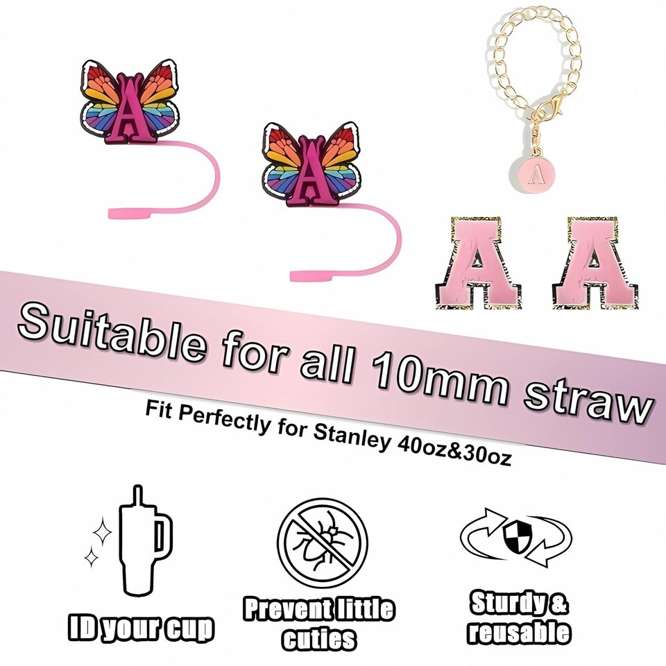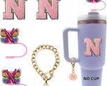 - IN CHENTHY Straw Topper 2pcs Letter N Covers + Charm Chain + Alphabet Stickers
