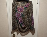 - INC International Concepts 2X Leopard Floral Rhinestone Blouse Top Sheer LSleeve