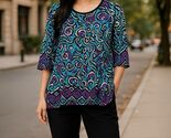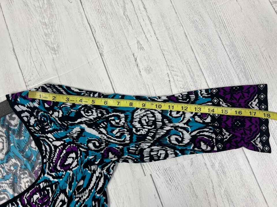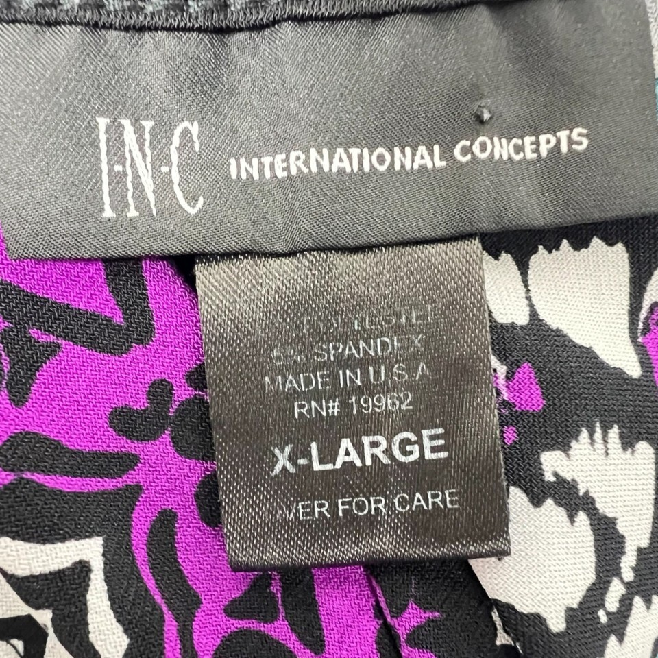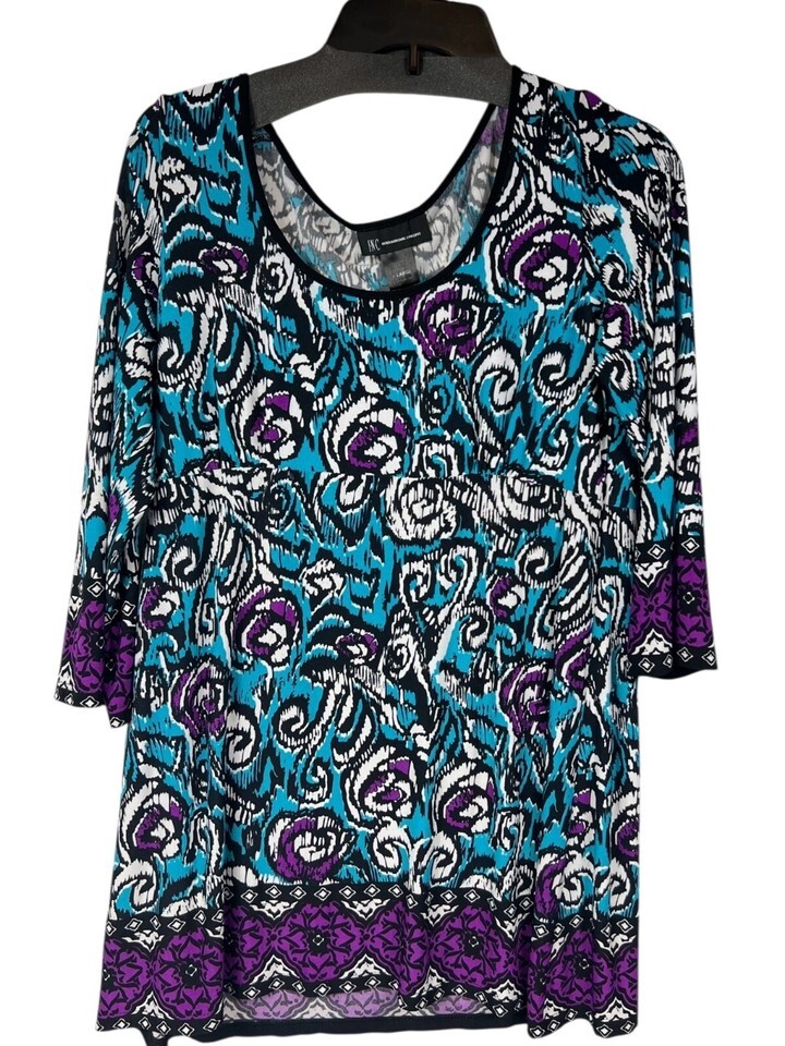 - INC Womens X-Large Multicolor Abstract Print 3/4 Sleeve Top With Scoop Neck