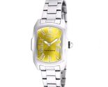 This Invicta Lupah wristwatch is a luxurious accessory suitable for both men and women. Its silver stainless steel case and rectangular shape give it a classic and sporty appearance, perfect for any occasion. The yellow dial adds a pop of color to the watch, while the silver bezel and band complete the elegant look.