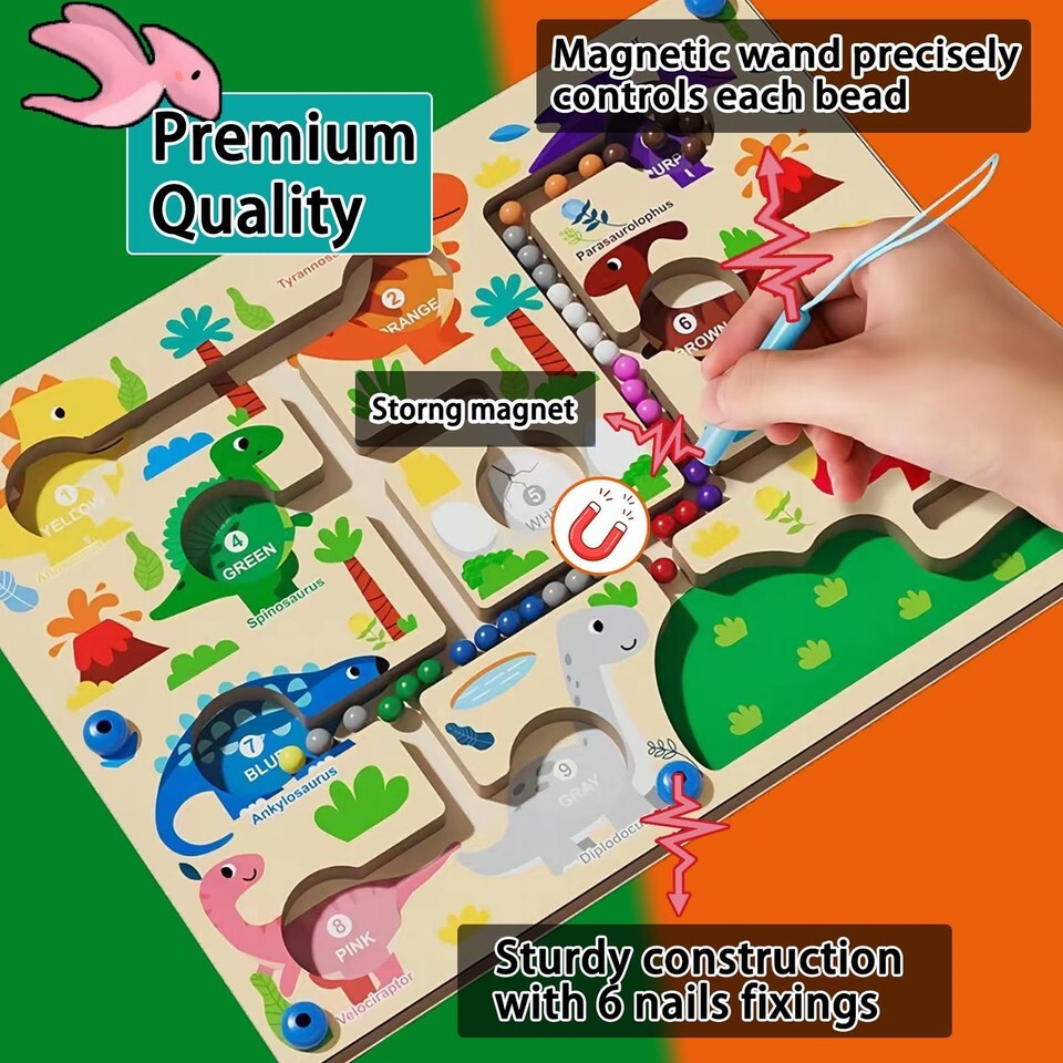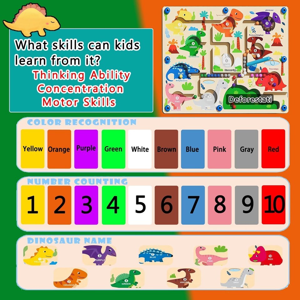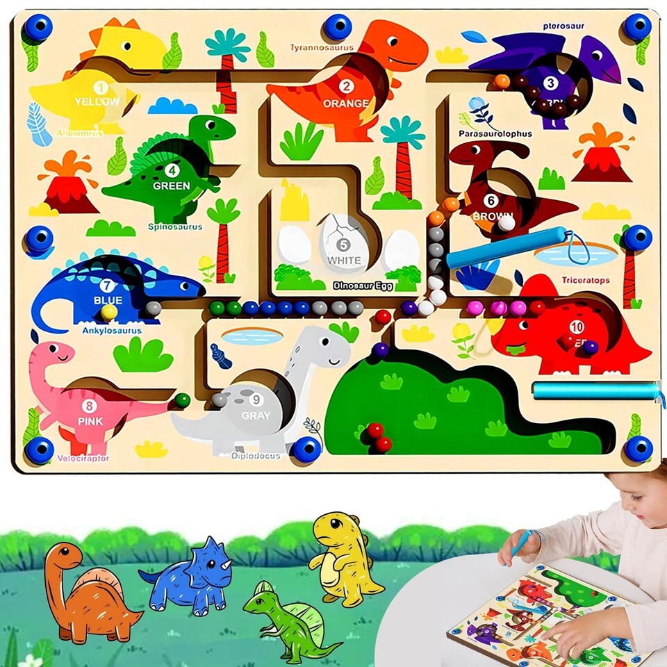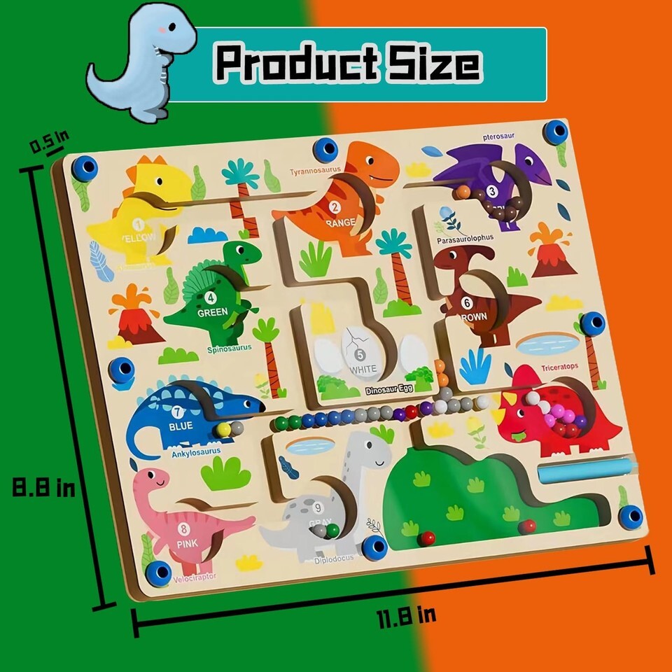 - IOOZ Magnetic Color & Number Maze Montessori Wooden Dinosaur Puzzle Toy