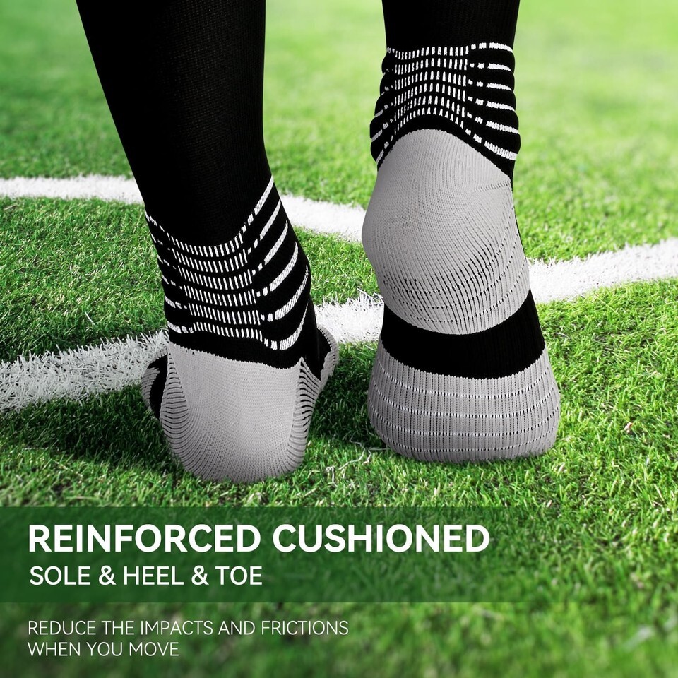 Elevate Your Performance with Gentle Compression: Our youth soccer football socks feature gentle compression technology, designed to enhance blood circulation in your legs and feet. By improving circulation, you can boost your athletic performance and minimize fatigue. Whether you're on the field or hitting the gym, experience the difference that mild compression can make in enhancing your overall mobility and endurance