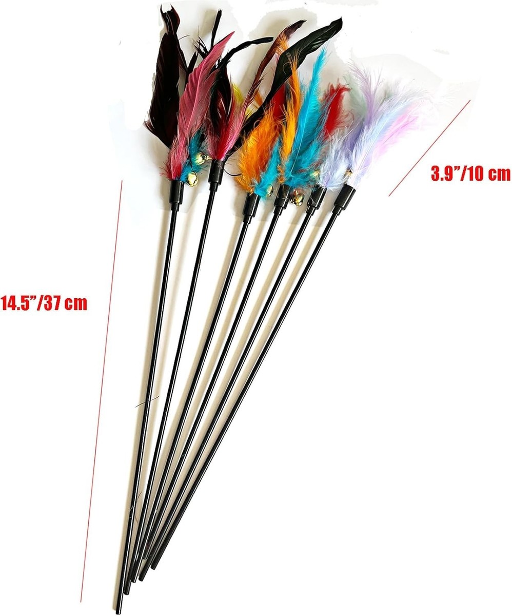 - IUHKBH Cat Wands, 6 PCS Interactive Feather Toys with Bell - 18'' Long Multi