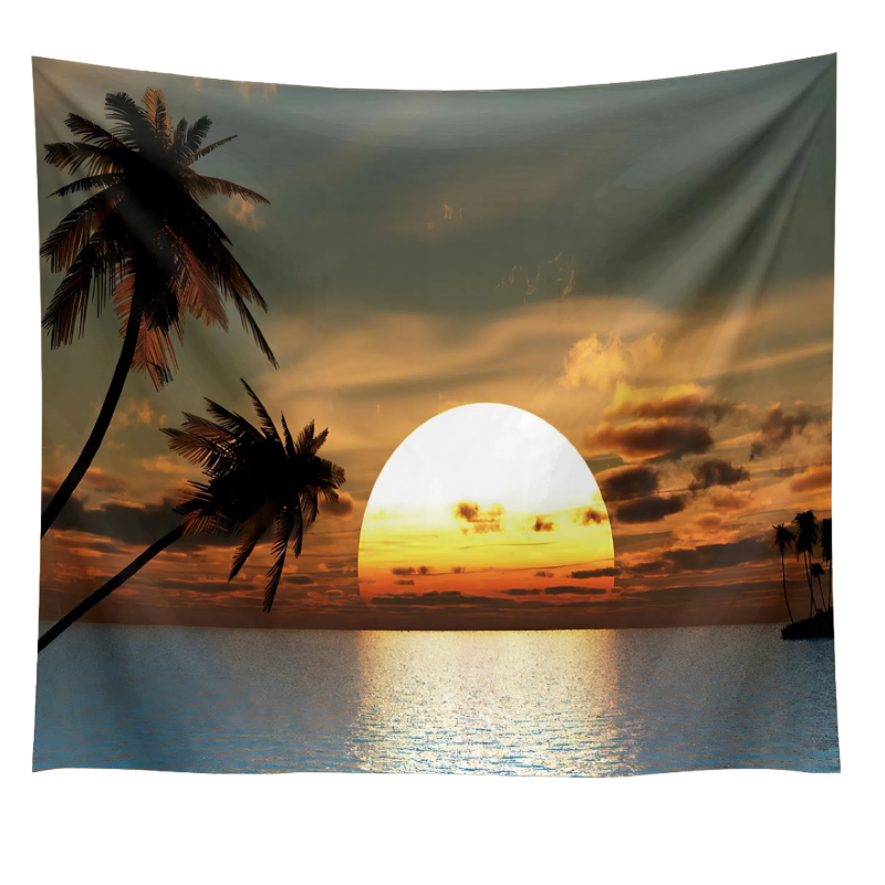 The sunset and ocean motif brings warmth and a sense of tranquility to any space. It acts as a focal point, drawing the eye and creating a relaxing atmosphere—perfect for unwinding after a long day or setting a cozy mood in a bedroom.