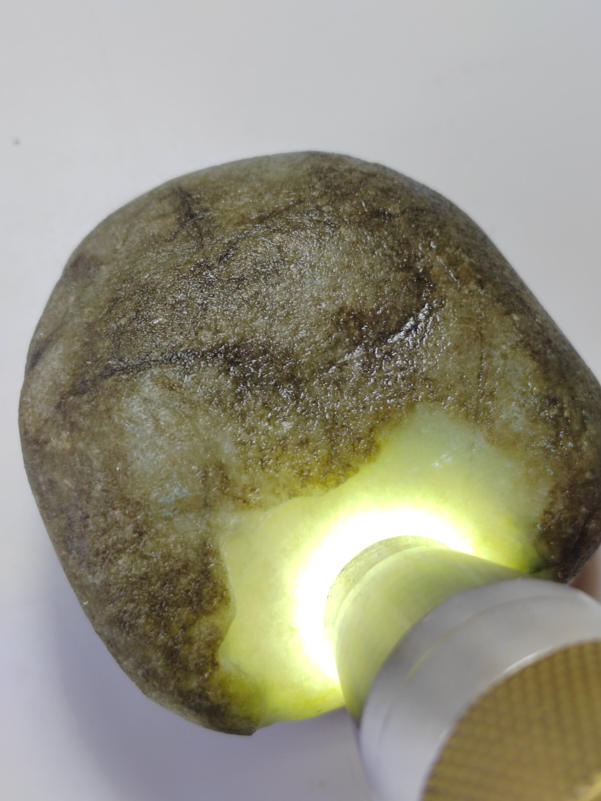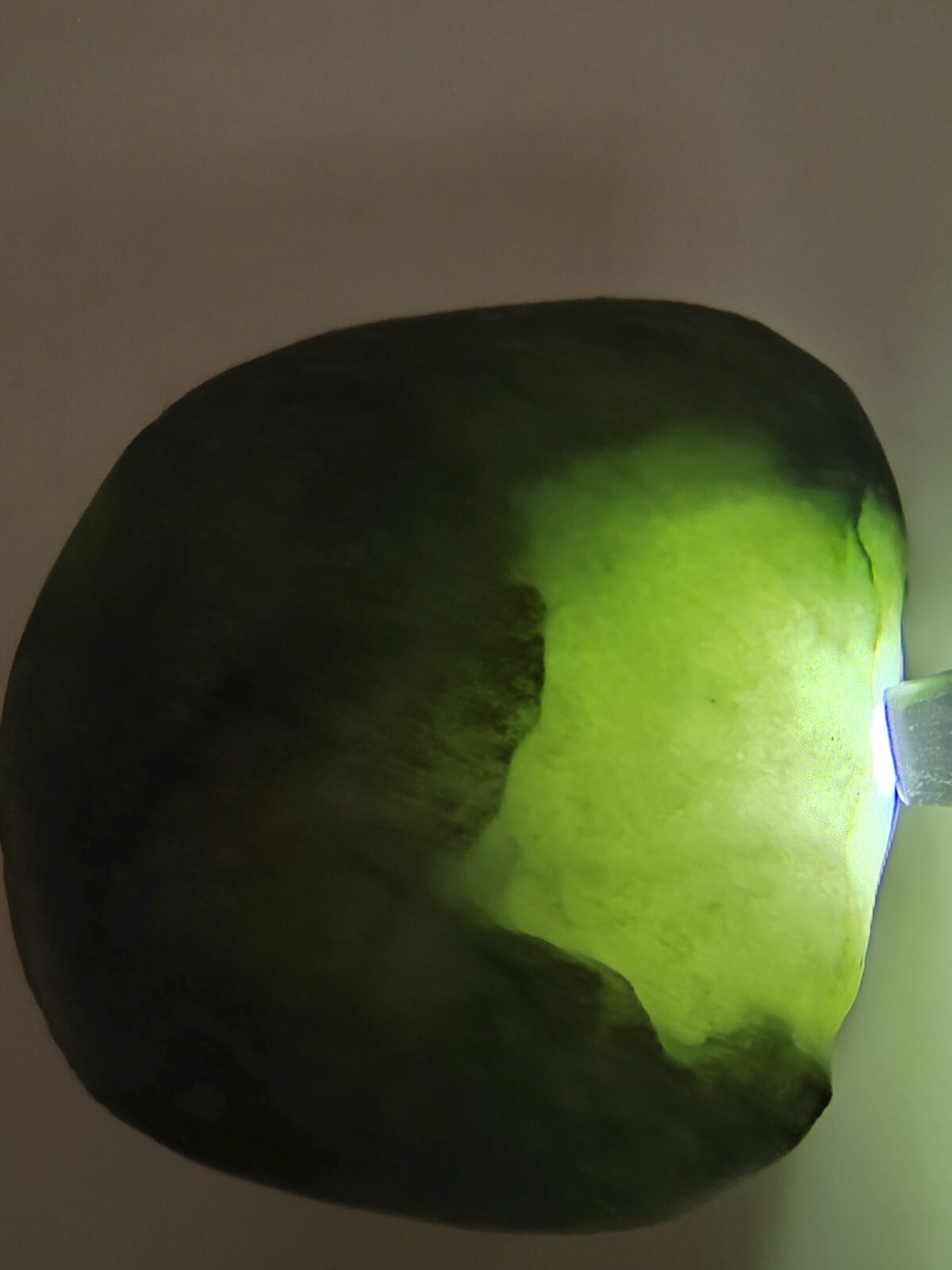 This natural Burmese jadeite specimen, belonging to the ice light green variety, epitomizes exceptional quality and unique charm with its delicate texture and pale green hue when viewed through preliminary opening and under light illumination. Ice light green jadeite is revered as a rare variety among jadeite enthusiasts, evoking boundless imagination and nostalgia with its subtle green tones. Given the rarity of Burmese jadeite and the increasing demand for it in the collecting world, this specimen holds immense value both as a store of wealth and a collector's item, earning it the moniker "King of Jade." Additionally, it represents a highly promising investment opportunity, capable of retaining value over time and being carved into intricate designs or fashioned into high-end jewelry pieces. Measuring approximately 63.30mm/56.90mm/34.50mm and weighing around 231 grams, equivalent to 1155 carats, this specimen possesses well-balanced proportions, underscoring its rarity and preciousness. Its moderate size makes it suitable for various exquisite forms, making it an excellent choice for jewelry collectors. In conclusion, this ice light green jadeite specimen stands out in the jadeite collecting world for its exceptional quality, unique color, and tremendous potential. Its presence not only enriches the collector's market but also brings endless anticipation and delight to collectors and investors alike.