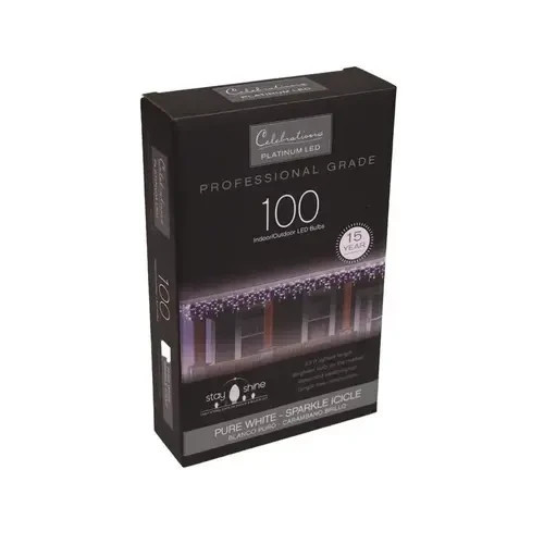 - Icicle Christmas Lights LED T5 9.5' ft 100-ct Pure White Celebrations (5-PACK)