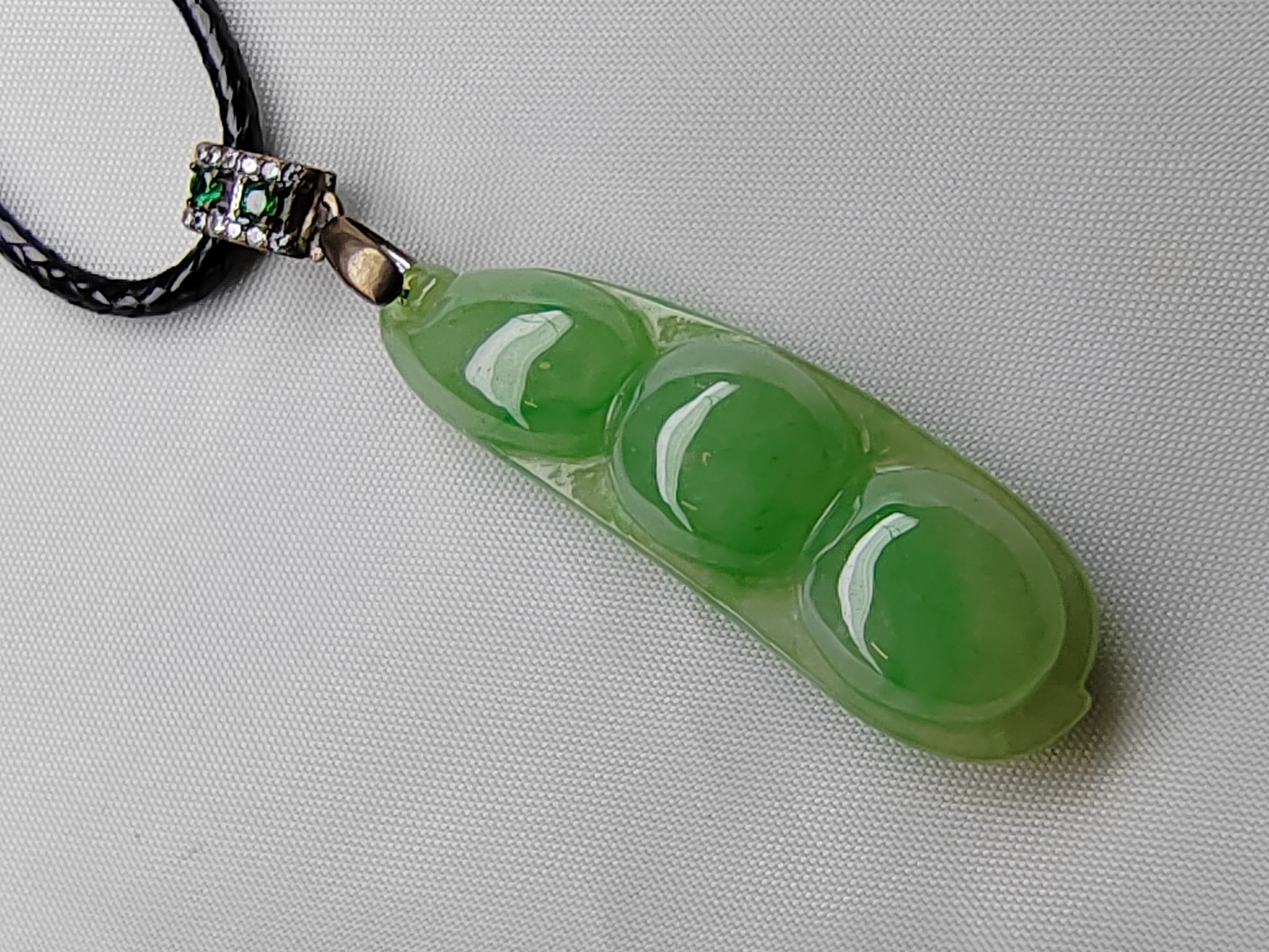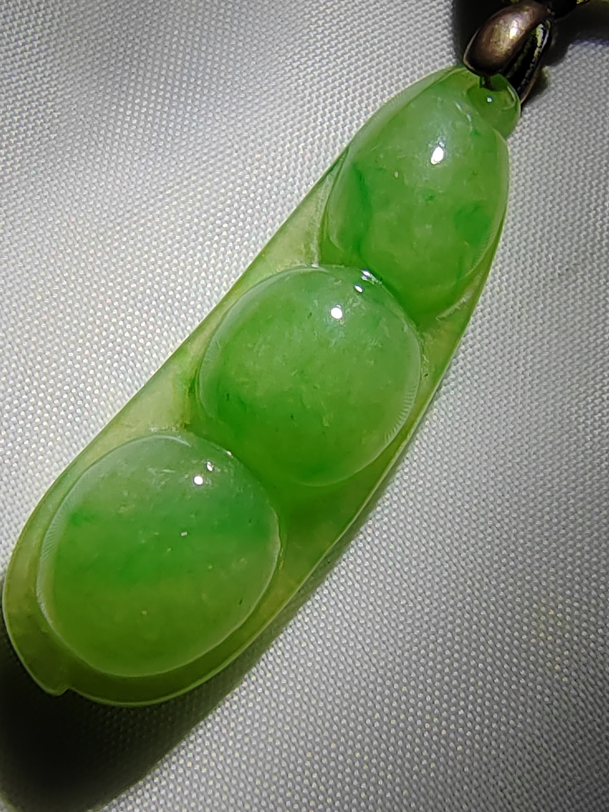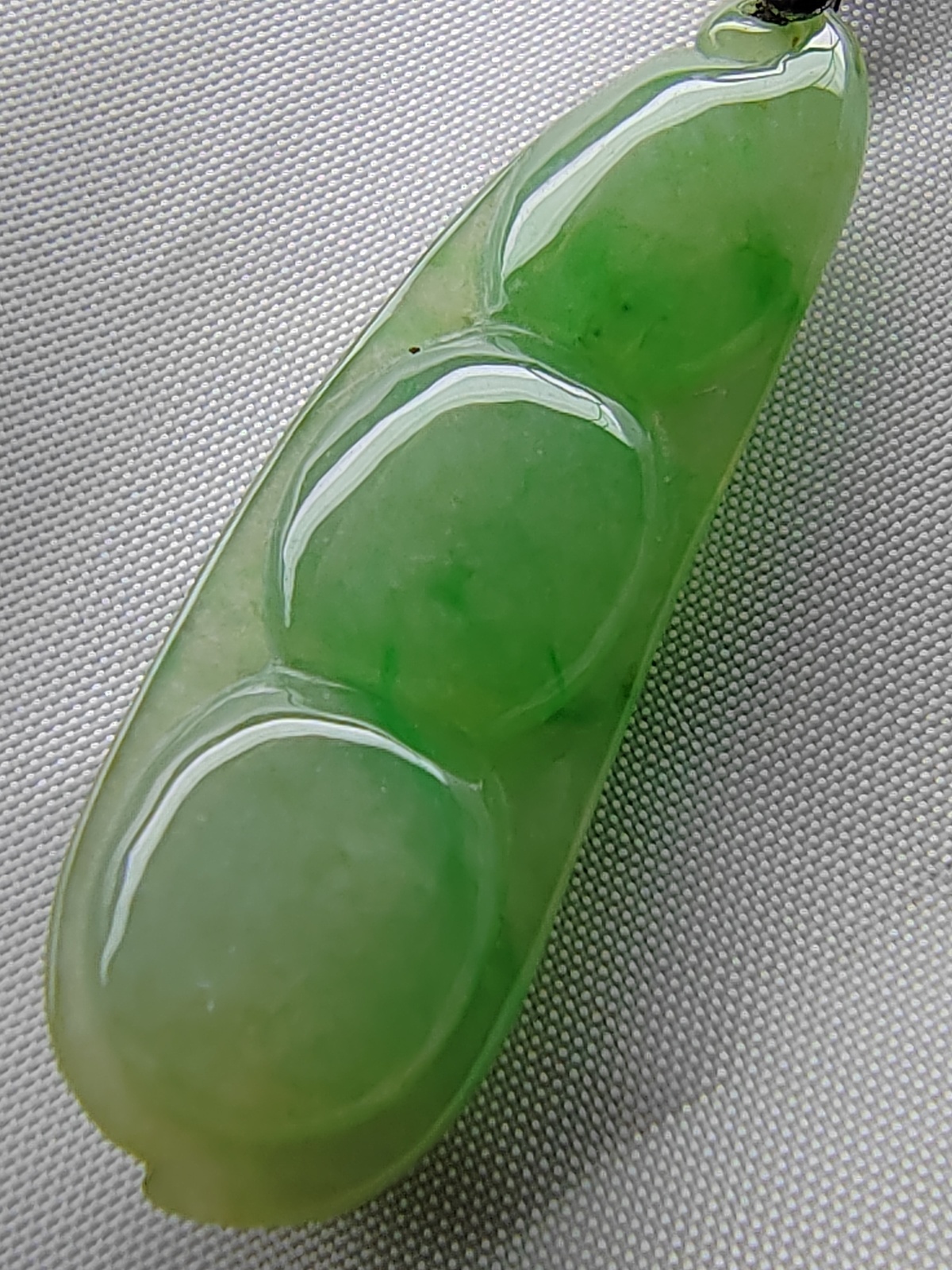 Jadeite Bean - Beans are one of the most popular jade carving themes. String beans are exquisite and small, very aura. String beans are also known as "FU DOU" "??“, a homonym meaning of happiness is coming soon. Its also means maturity, harvest, academic success, prosperous family and happy family.