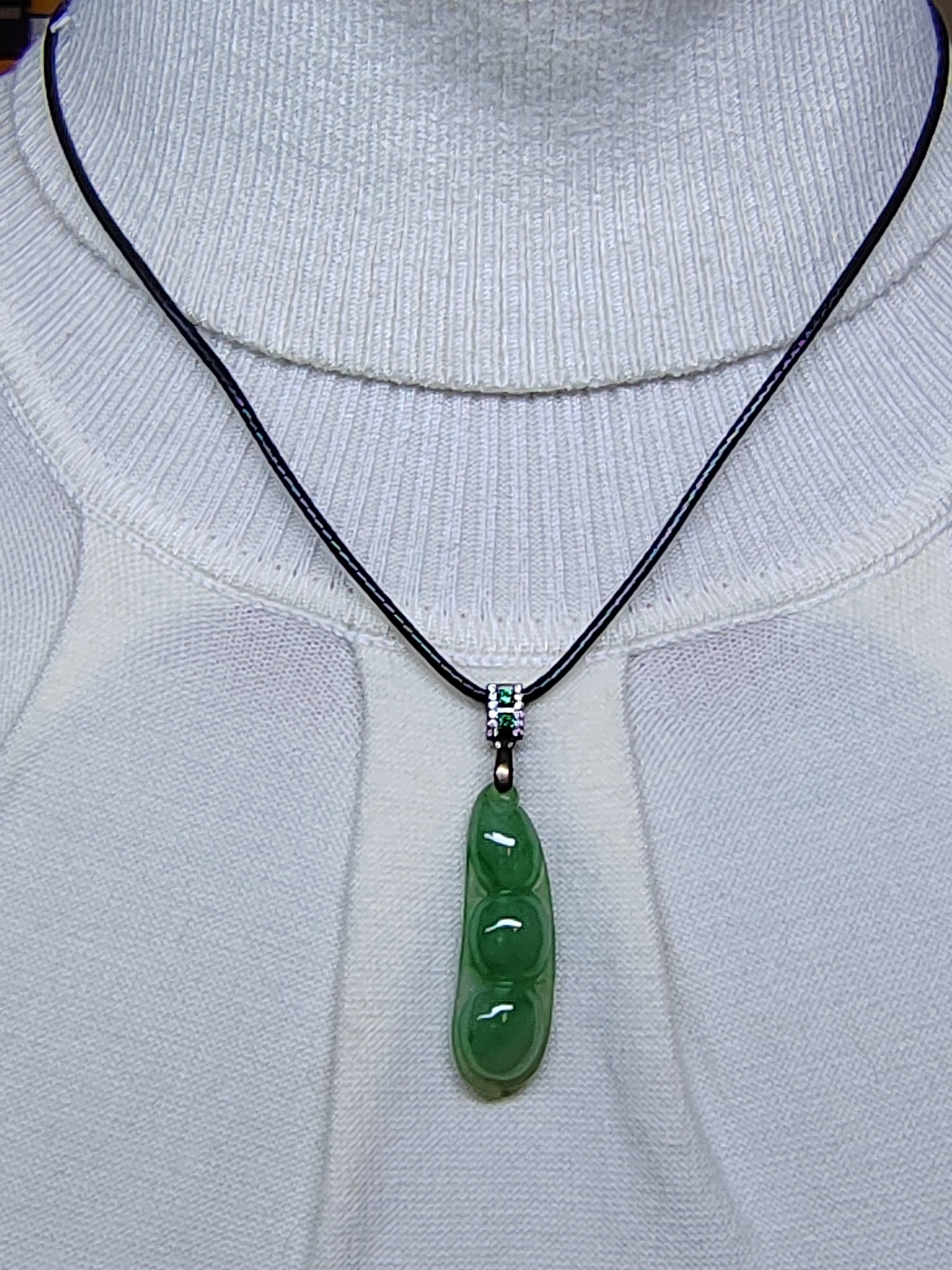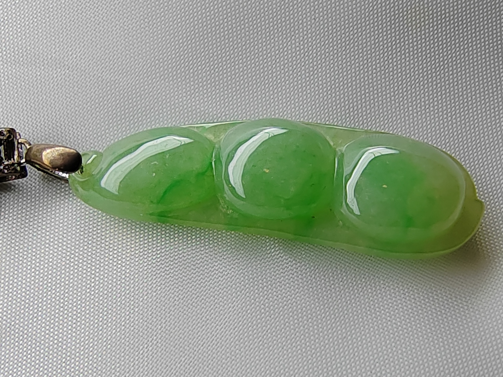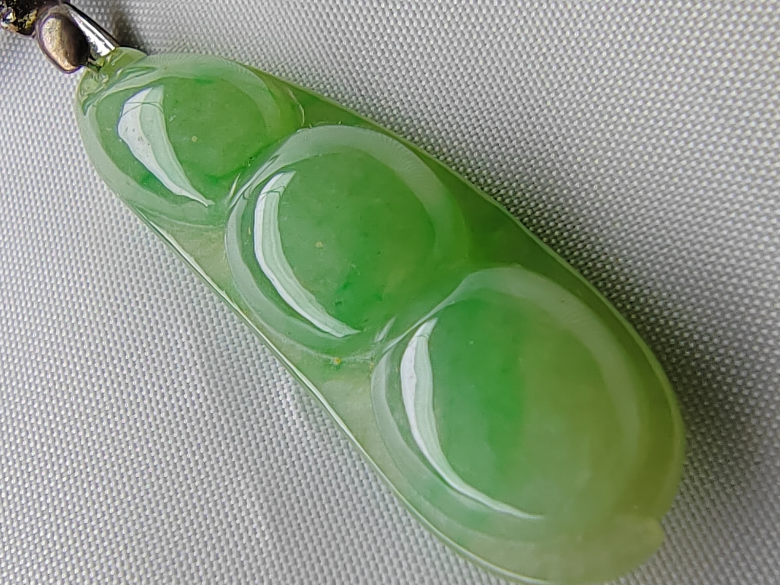 Jadeite Bean - Beans are one of the most popular jade carving themes. String beans are exquisite and small, very aura. String beans are also known as "FU DOU" "??“, a homonym meaning of happiness is coming soon. Its also means maturity, harvest, academic success, prosperous family and happy family.