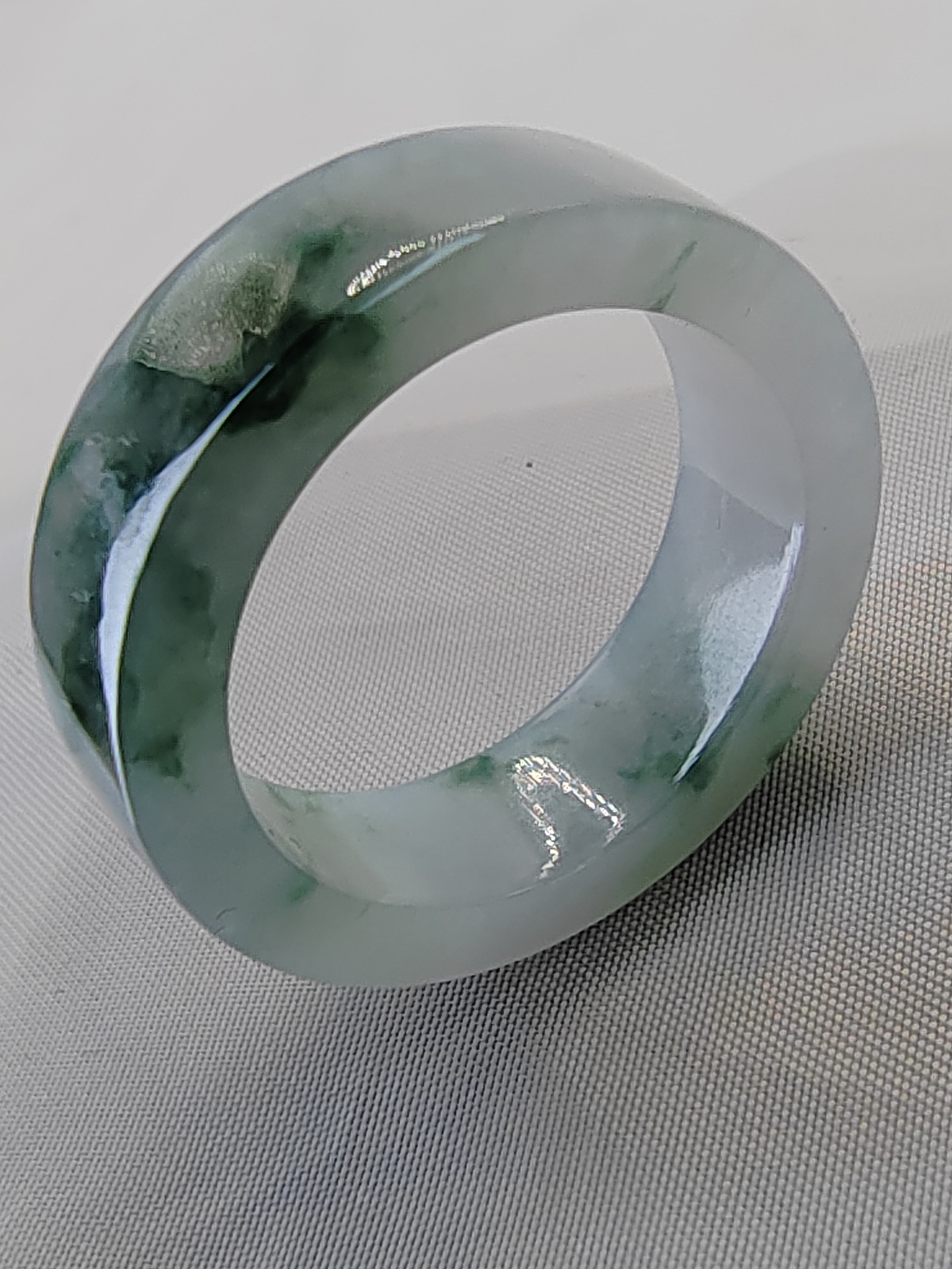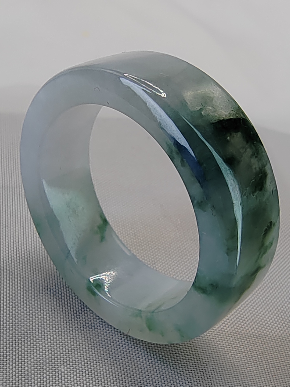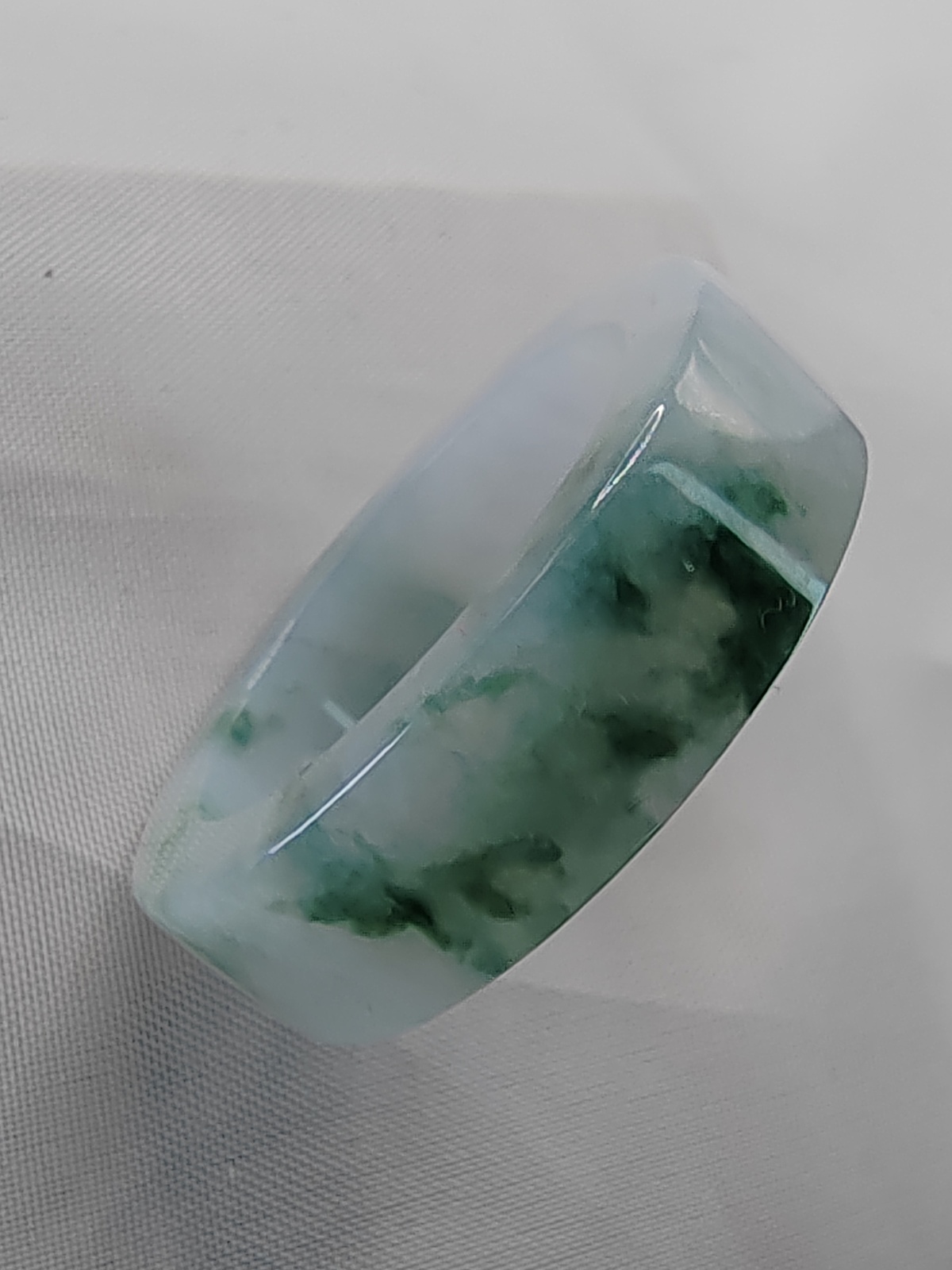 - Icy Ice Bluish Green Natural Jadeite Jade Band Ring # US SIZE 13.5 # 22.60mm