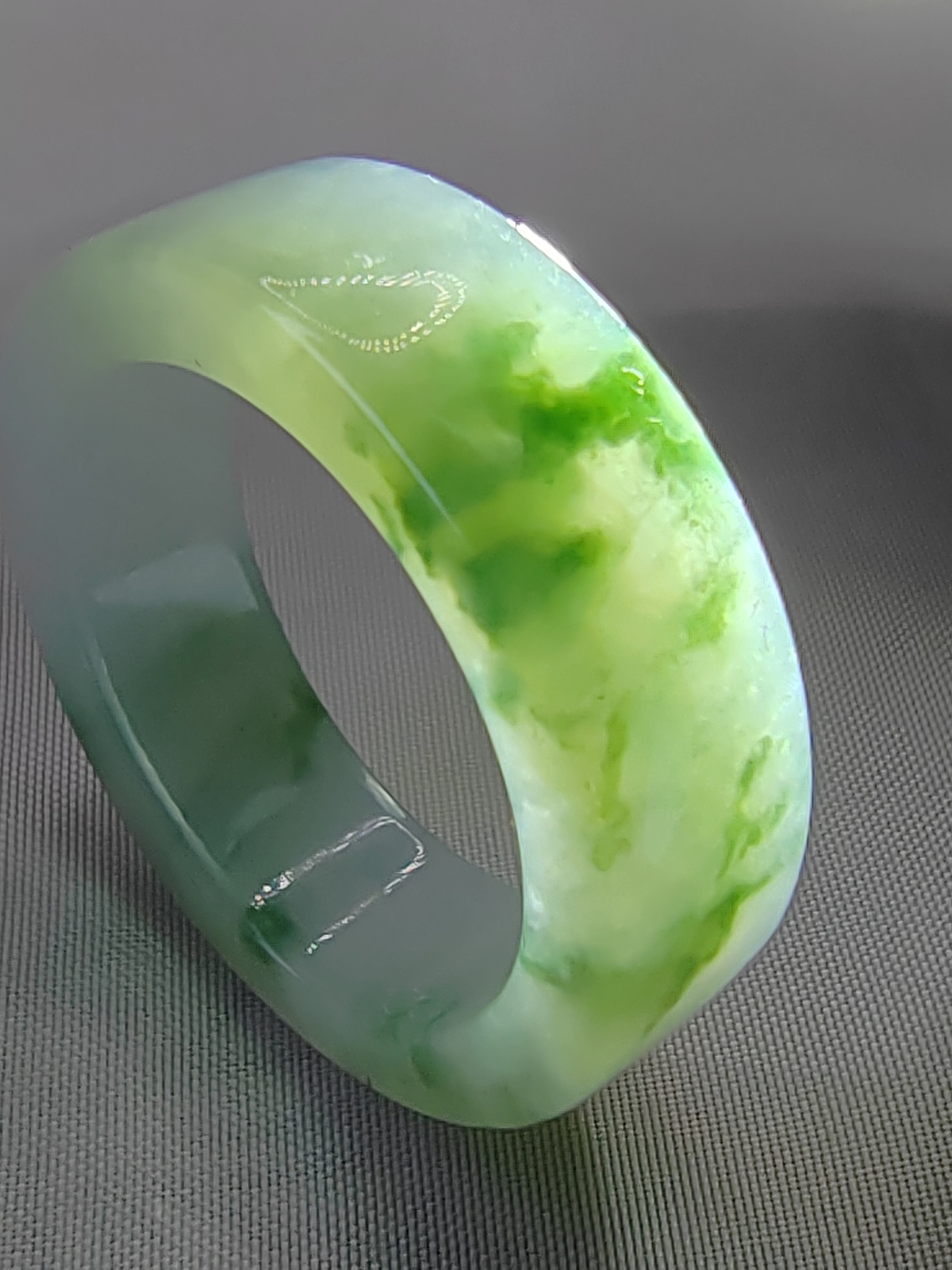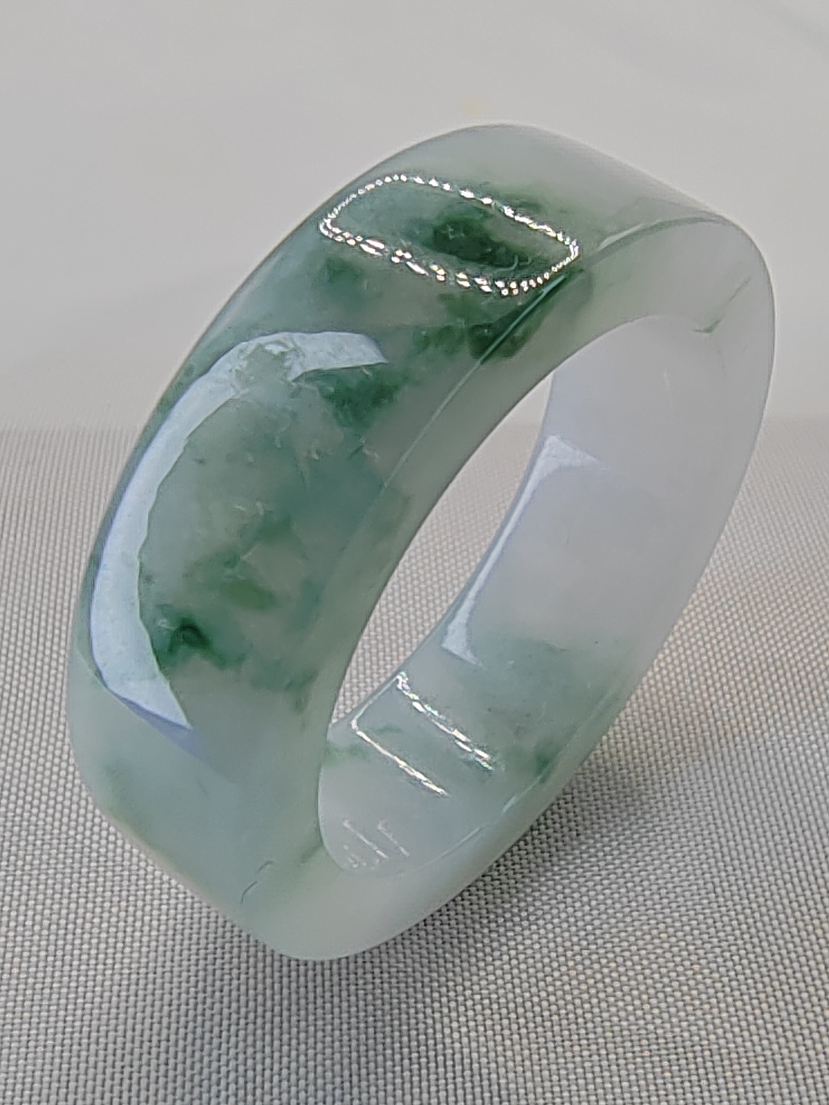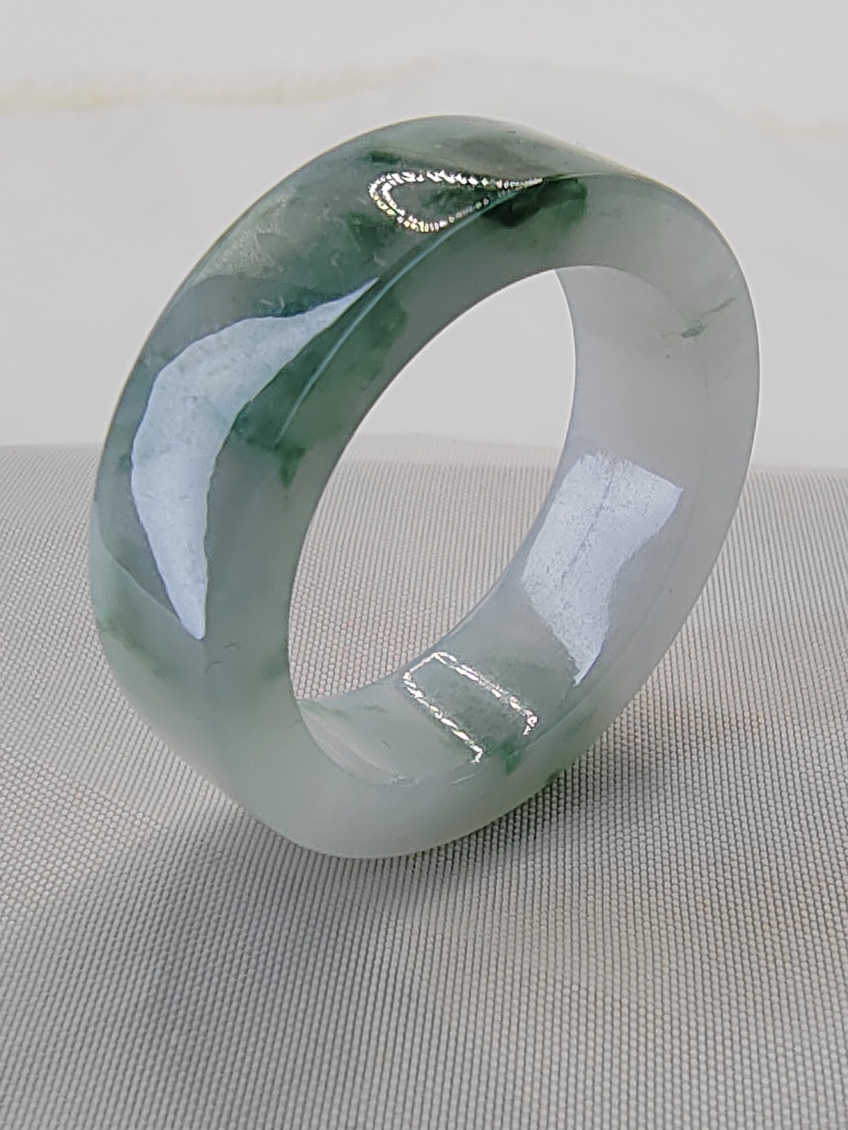 Natural jadeite jade band rings are rare and distinctive treasures, entirely carved from a single piece of jadeite jade without any metal setting, requiring exceptional raw material quality and precise craftsmanship. Only jadeite jade with fine texture, vibrant and even color, and structural integrity can be shaped into a flawless band, making such pieces exceptionally scarce, especially in top-grade jadeite jade. As premium deposits diminish, their rarity and market value continue to rise. In Eastern culture, jadeite jade is revered as a symbol of virtue, harmony, and protection, while a complete circular band embodies perfection, unity, and eternity. For collectors, a jadeite jade band ring is more than an ornament, it is a wearable work of art that fuses the natural beauty of the stone, the artistry of carving, and the deep cultural blessings it represents, making it both an enduring investment and a meaningful heirloom.