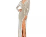 - Ieena for Mac Duggal Faux Wrap Ruched Sequin Gown Women’s Sz 0 Nude Long Sleeve