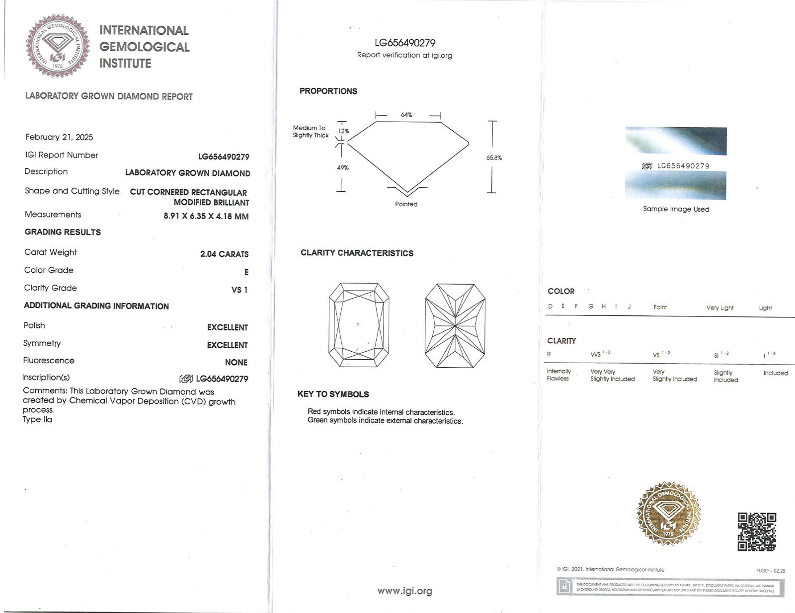 Der Ring wird mit der Berichtsnummer LG656490279 mit dem Internationalen Gemological Institute (IGI) geliefert