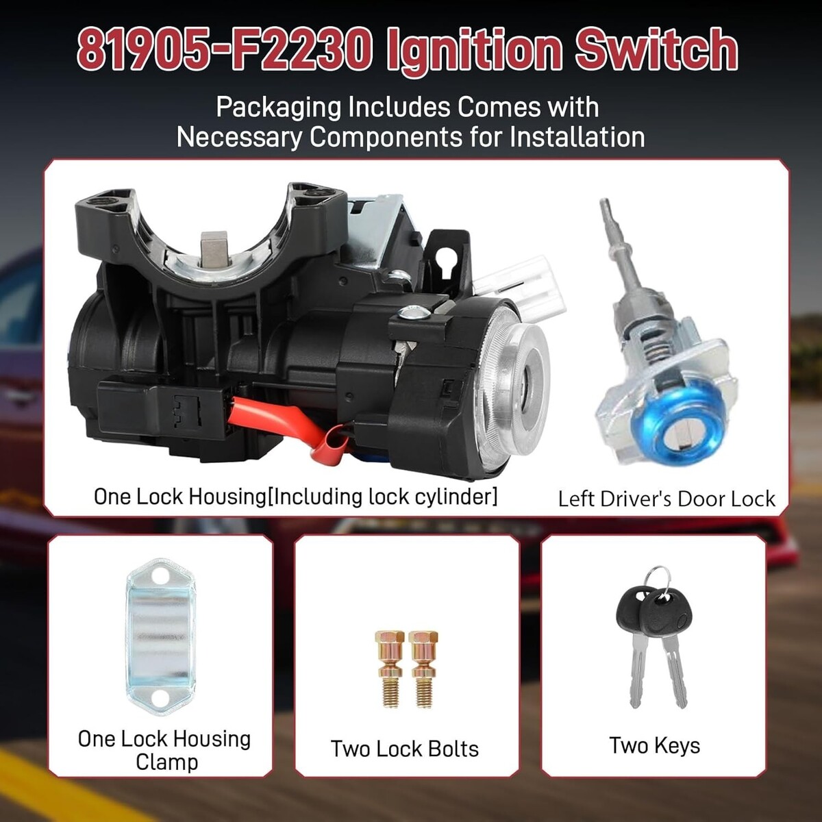 [Premium Material] The 81905-F2230 ignition lock cylinder housing is made of high-strength steel, aluminum and ABS plastic, which gives the ignition lock housing superior durability, corrosion and wear resistance. Engineered to withstand harsh environments, it ensures stable performance and long-term reliability for your vehicle