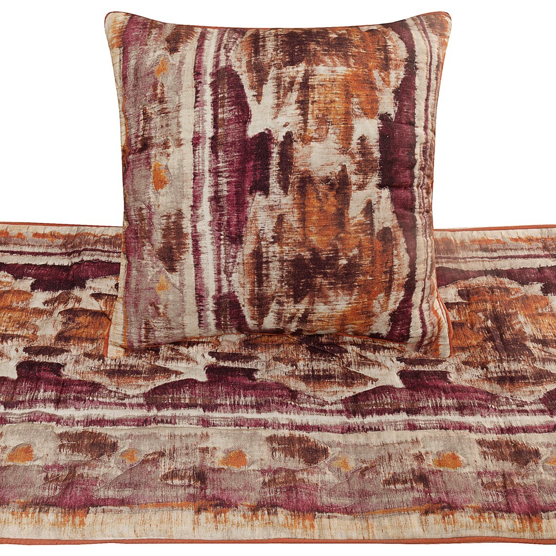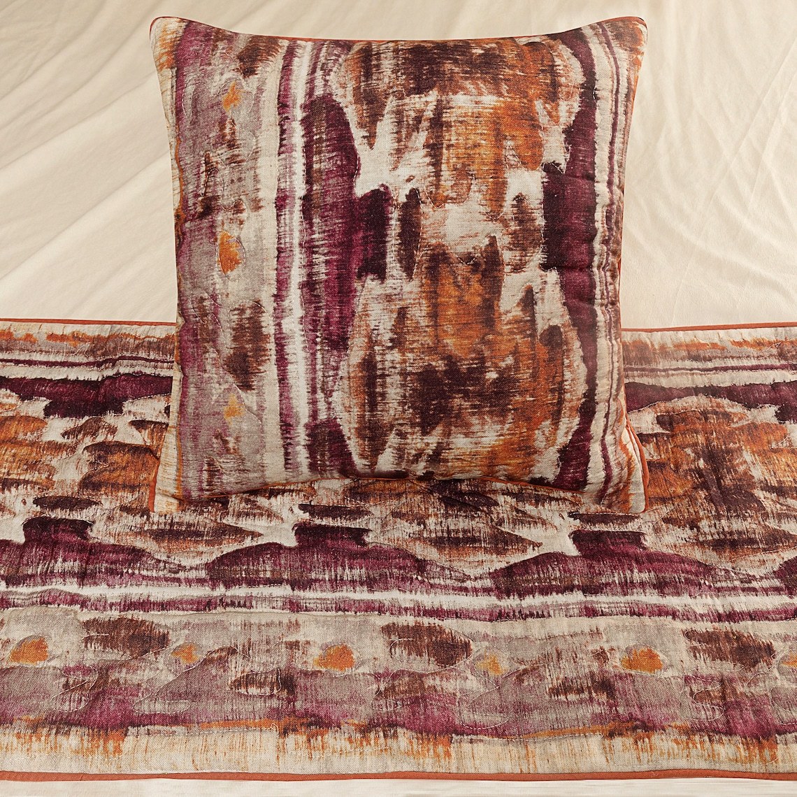 - Ikat Splash - Cotton Printed Pink & Orange Decorative Bed Runner and Pillow Cove