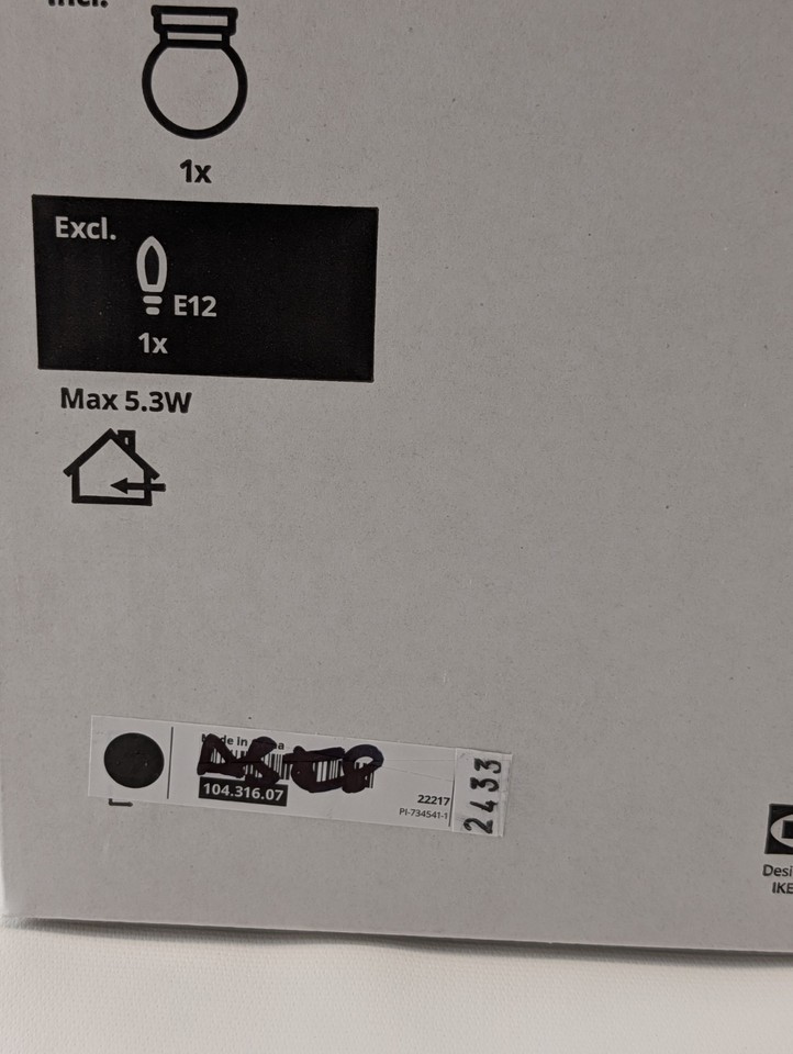 Light bulb sold separately. IKEA recommends LED bulb E12 chandelier opal white.