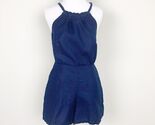 In God We Trust Womens High Neck Sleeveless Shorts Romper Open Back Blue Size XS