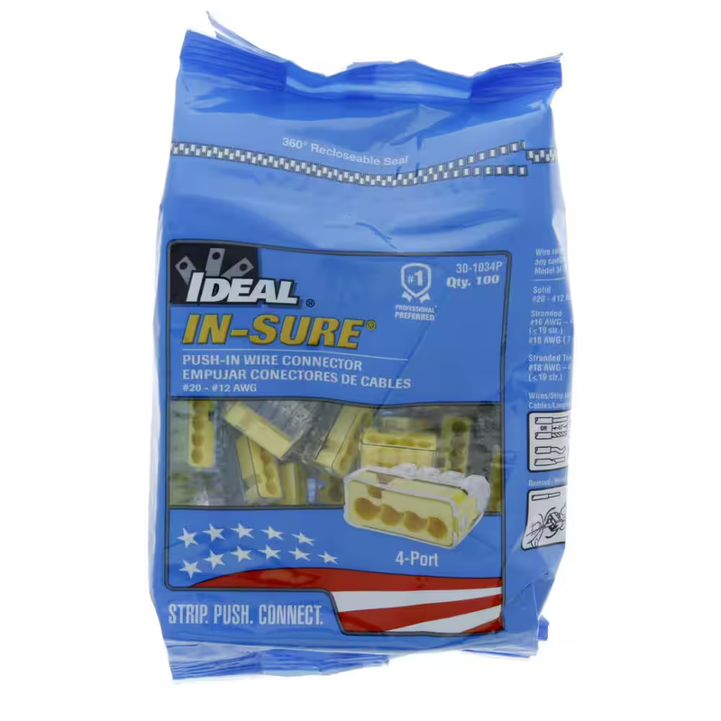 - In-Sure Push-In Wire Connector, 4-Port, Bag of 100