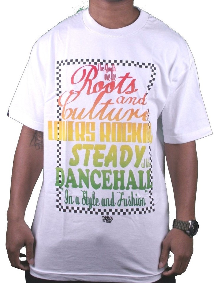 Questo e per un nuovo di zecca con tag in4mation Roots Culture Lovers Style Fashion Brown o White T-shirt "I giovani sono le radici e gli amanti della cultura che si scuotono costantemente tutto il dancehall in stile e moda" Realizzato negli Stati Uniti!