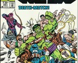 *Newsstand Edition. "All Fall Down!" Guest starring the Avengers (Captain America, Wasp, Captain Marvel, Namor, Hercules, and the Black Knight), the West Coast Avengers (Hawkeye, Mockingbird, Iron Man, Wonder Man, and Tigra), She-Hulk, and Doc Samson. Fantastic Four cameo. Story by Al Milgrom. Art by Al Milgrom and Dell Barras./ It's the battle royal for the ages as the Avengers and the West Coast Avengers clash head on into the rampaging man-beast known as the Hulk. With the combined might to topple planets, can these heroes hope to accomplish the unthinkable? Can they defeat the Incredible Hulk?