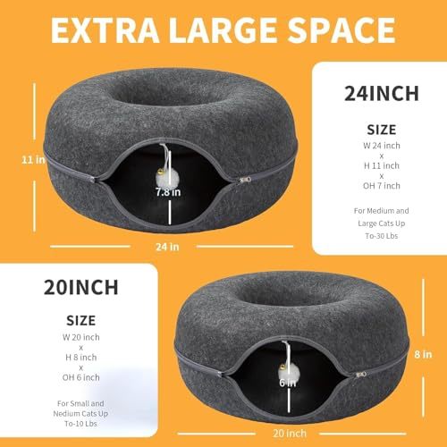 Cat Tunnel Bed, Cat Tunnel, Jia Xi Indoor Cat Hideout, Donut Cat Bed, Universal for All Seasons Cat Condo and Cat Cave (24 in * 24 in * 11 in) Dark Grey